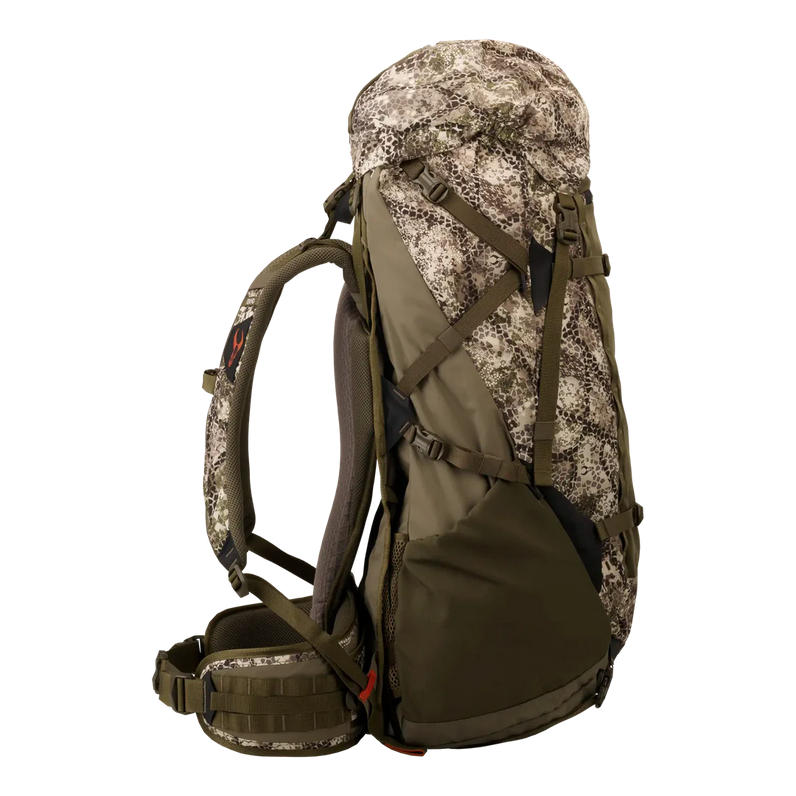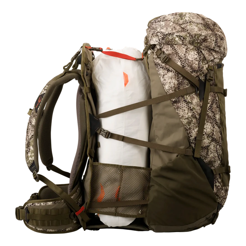 The “middle child” of the lineup, the MRK 4 splits the difference between large and small meat haulers. Coming in around 4,000 cubic inches of storage, the MRK 4 features a top-loading design and our highly effective “split-pack” design which allows the pack to drop away from the suspension and carry your meat closer to your body. The result is a more comfortable heavy haul and a less exhausted hunter. That means more time and energy for…hunting, of course.