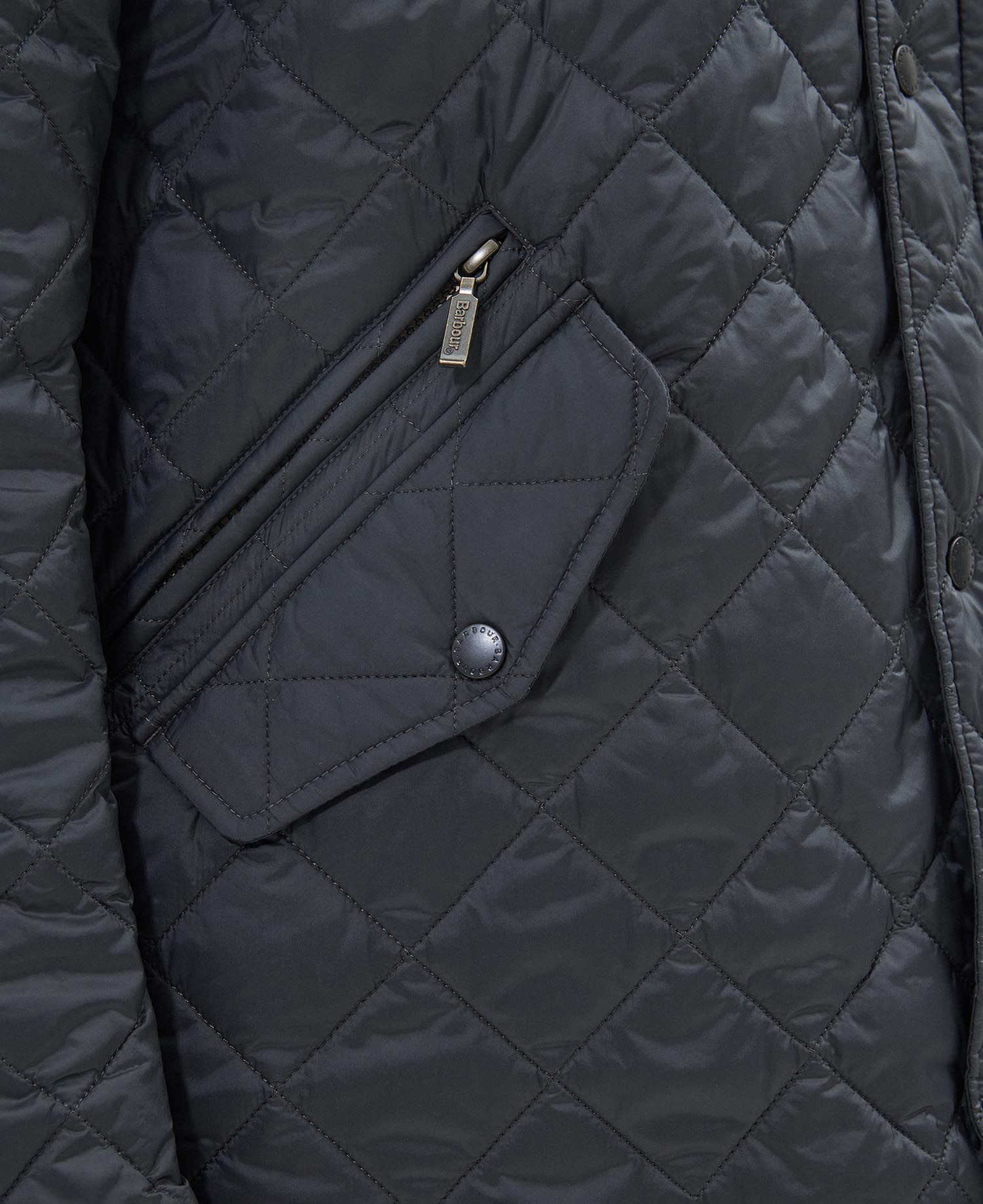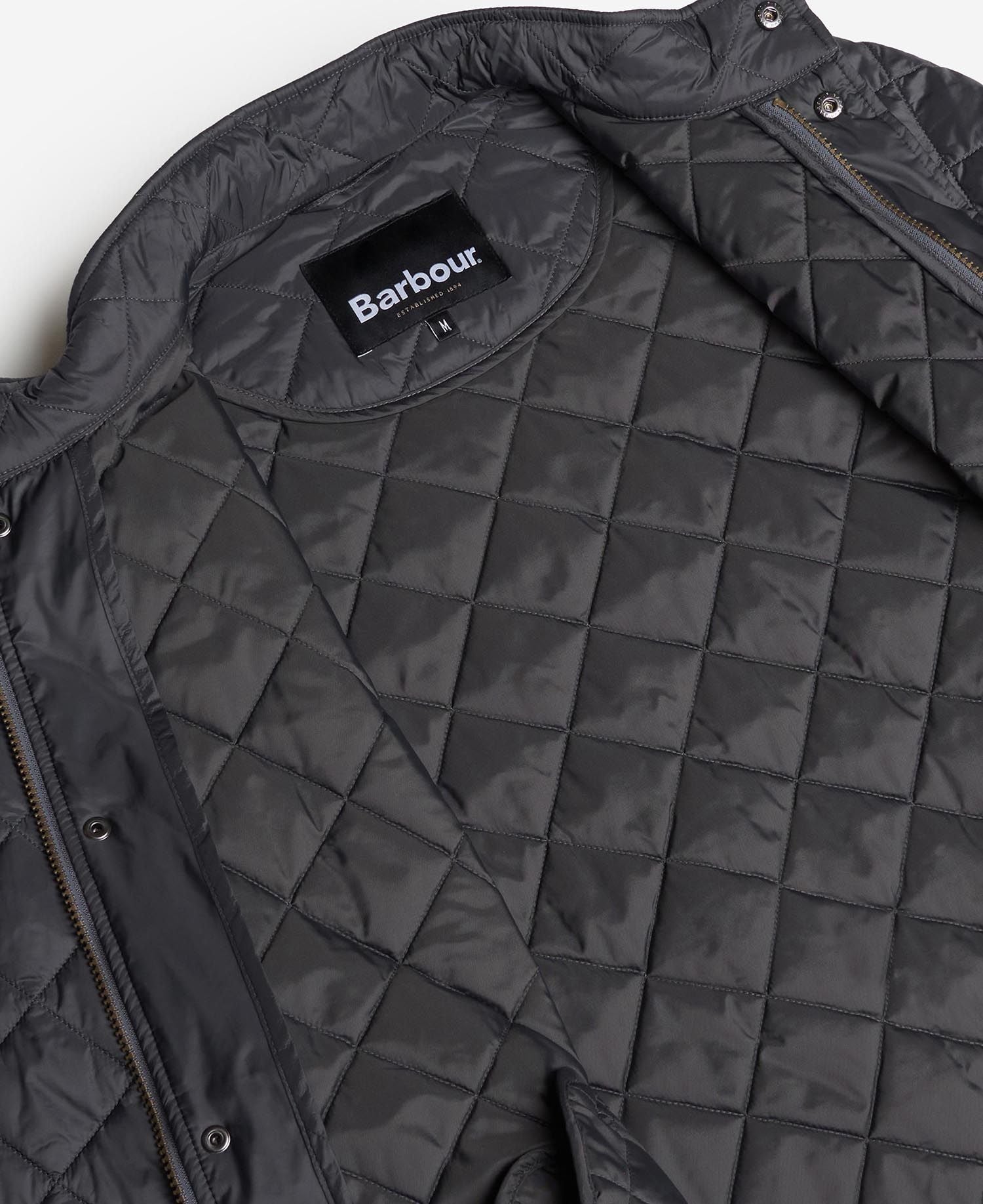 Based on the ever-popular Chelsea jacket, this practical version updates the theme with a lighter weight construction and a relaxed, subtly tailored, fit. From the Day at the Races capsule, the Flyweight Chelsea retains its forerunners' classic equestrian styling and is crafted with Barbour's iconic diamond quilted outer and a super-light 40 gram wadding, offering just the right level of insulation for the warmer months. The quilted funnel collar creates a fashionable look and provides extra protection when needed, while back waist tabs give an adjustable fit, ensuring comfort and freedom of movement. The Flyweight Chelsea's two-way front zip and robust stud fastenings help seal out summer showers, and two front pockets are teamed with an additional zipped welt pocket to keep essentials close at hand. A contrast lining provides an eye-catching finishing touch.