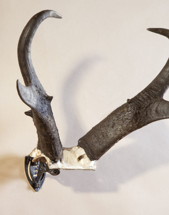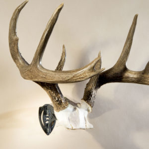 The Bone Bracket® can be assembled and hung in just a few minutes. Simply mount the wall plaque to the a wall stud with the supplied screws, attach the skull plate adjuster to the arm, locate and drill two holes in the skull plate, and install two screws to attach the skull plate to the skull plate adjuster. Then just insert the tapered arm pegs into the wall plaque canisters, and make any final adjustments to the trophy positioning for the perfect display.