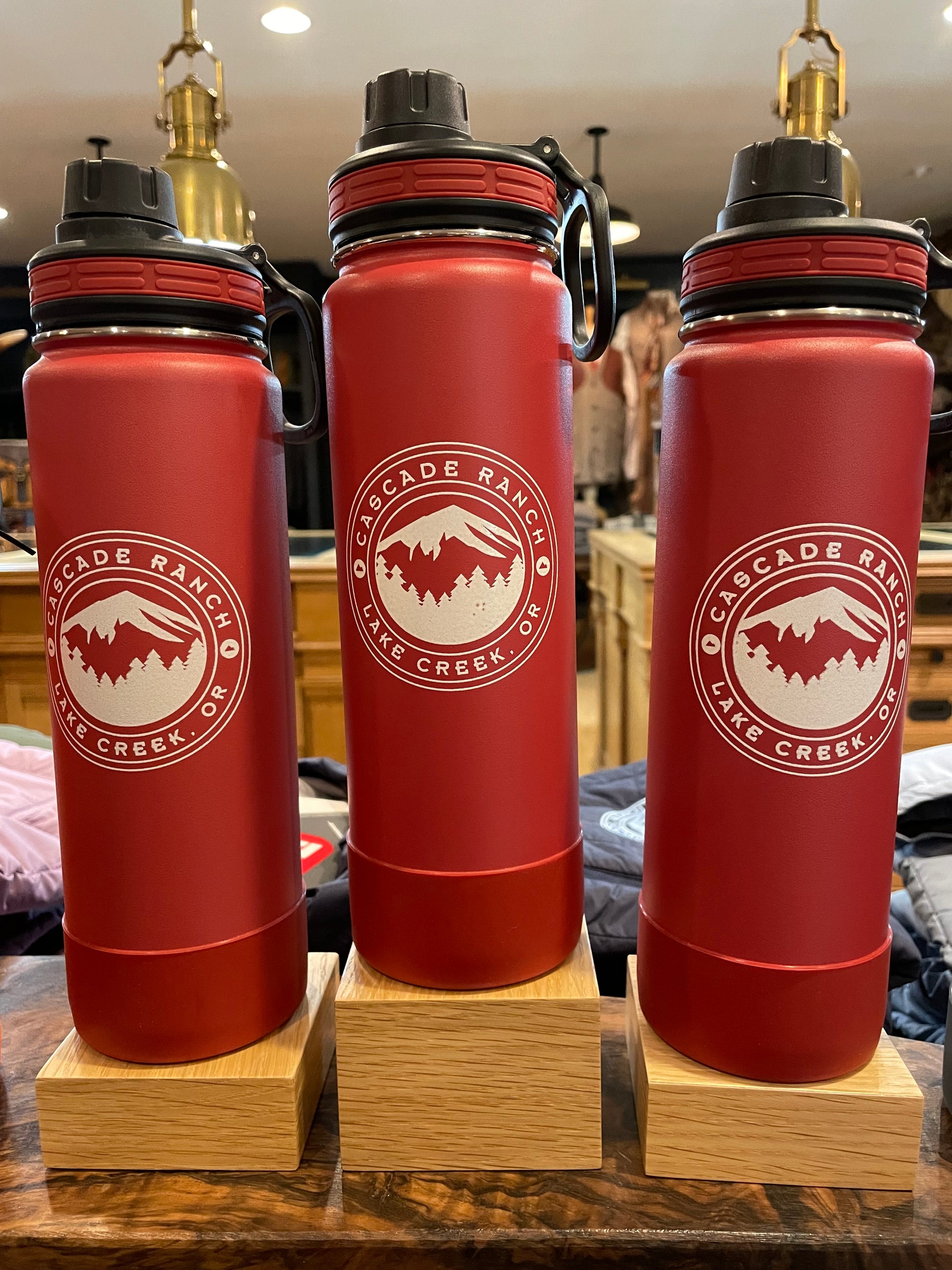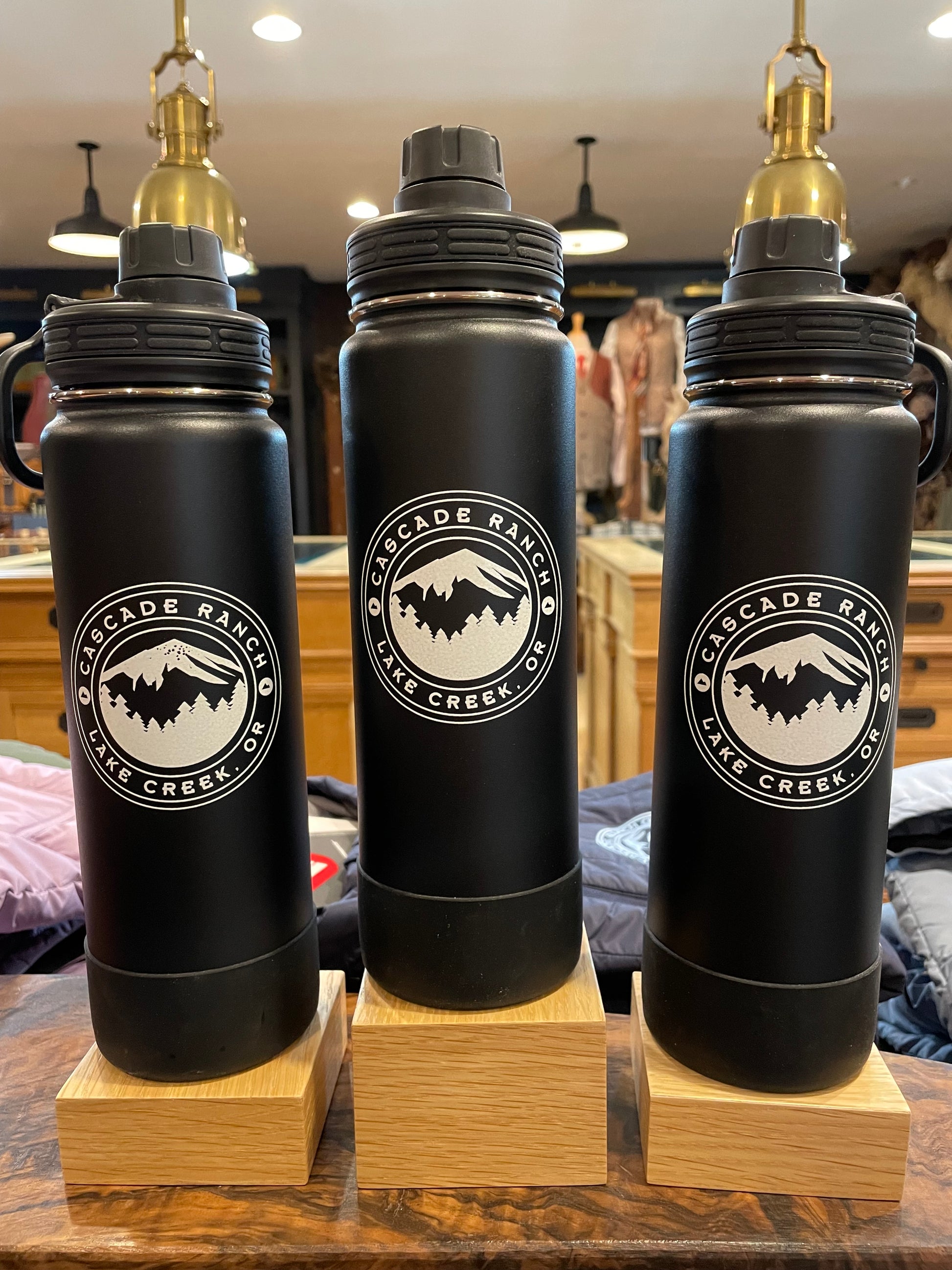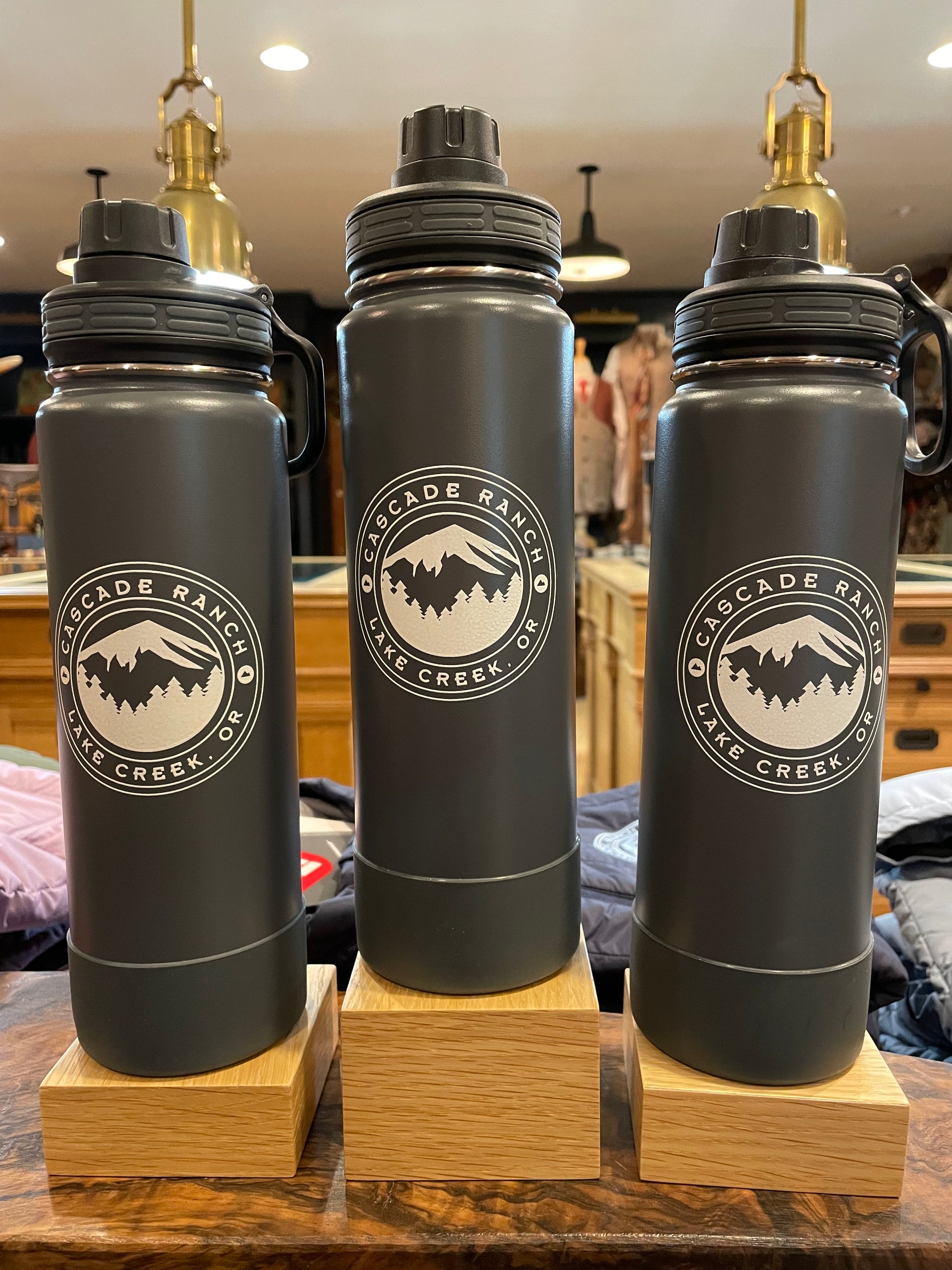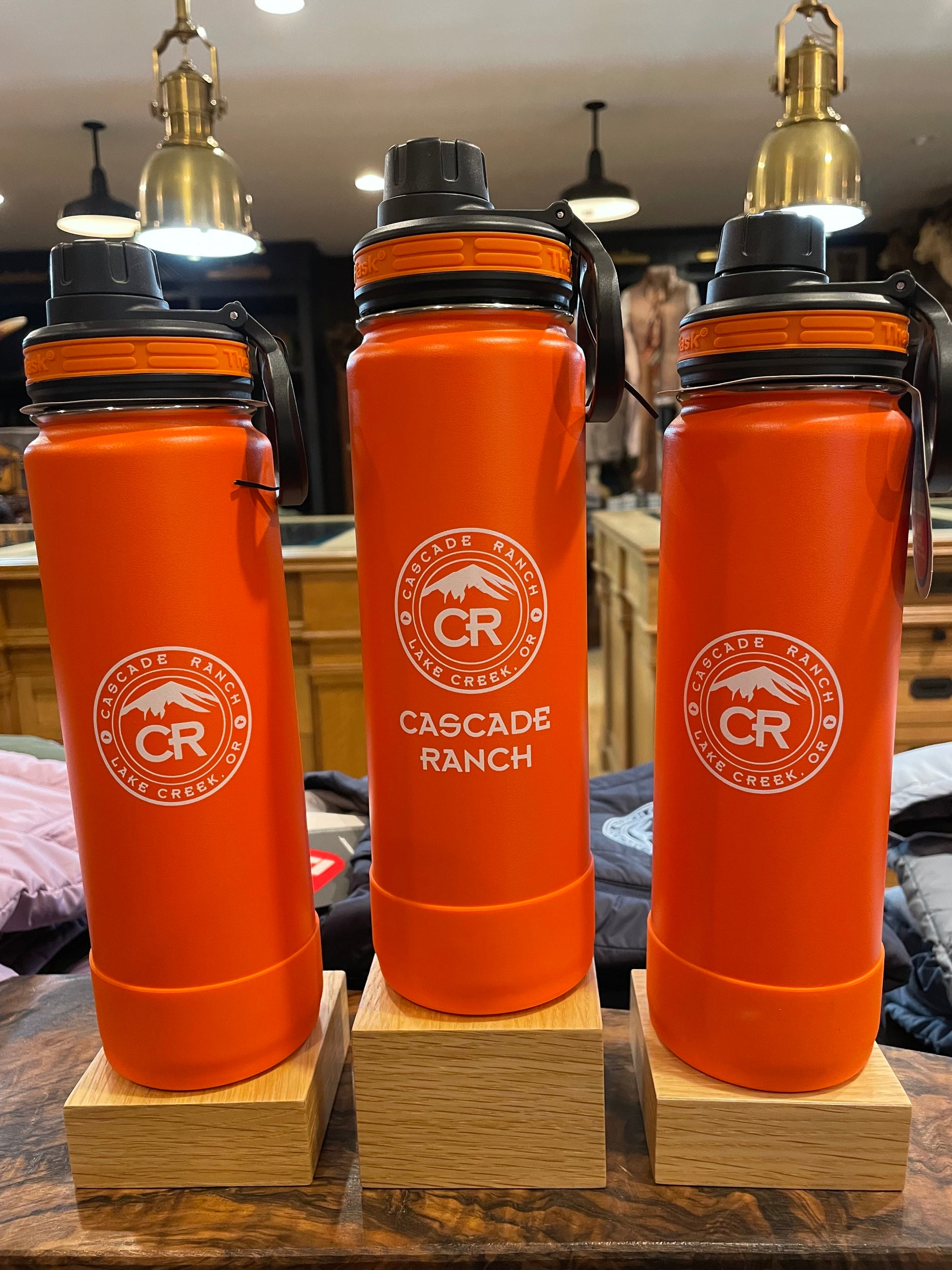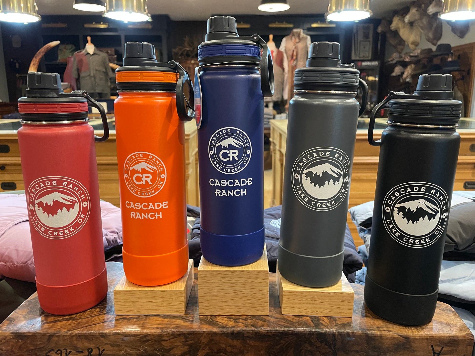 Maintain optimum temperature control and hydration levels with notable distinction. With the Cascade Ranch Outfitters logo prominently placed on one of the most dependable liquid containers on the market, you can count on the high level of quality and technicality that you've come to rely on from Cascade Ranch Outfitters. For a limited time only, catch our traditional "Tree Tops" nostalgia logo or our "Ranch Brand" modern logo in a pleasing variety of colors.