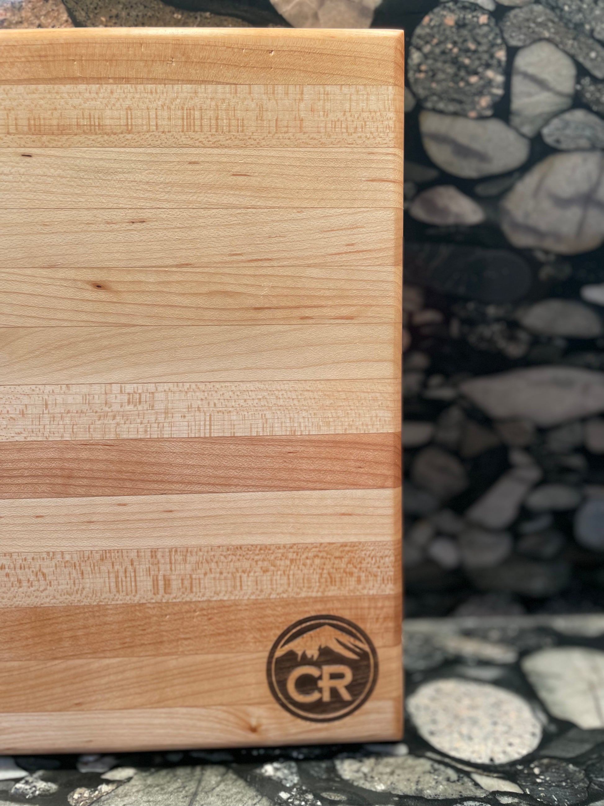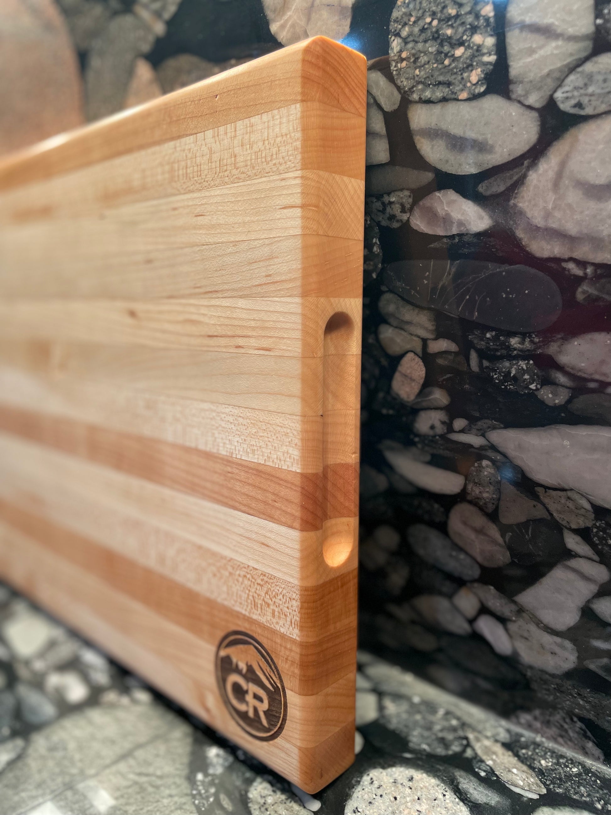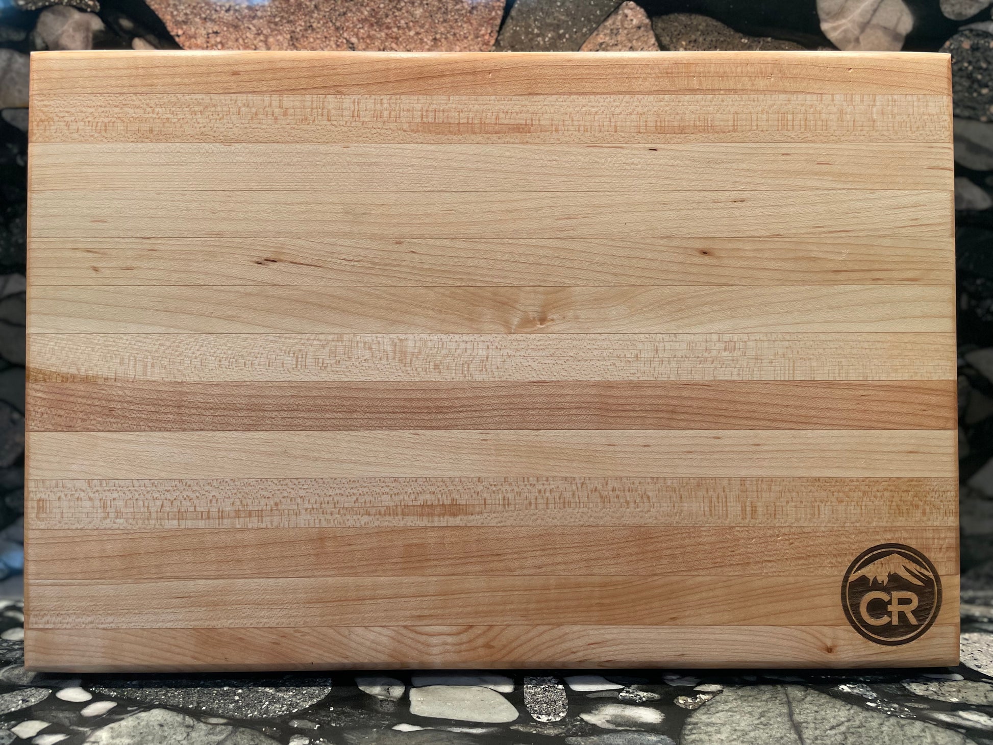 These beautiful maple cutting boards are sturdy and reliable. Handmade with routed side handles for better functionality, and a touch of chic with the Cascade Ranches logo engraved into the board.