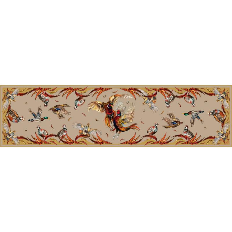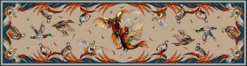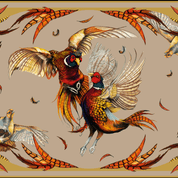 Best in Show is a collaboration of many of the different breeds of Game birds seen in the British Countryside. Each bird featured in this explosive design is showing off or displaying in some way. The collection of colors, vibrancy, and passion mean that it can be worn with almost any outfit, suit just about everyone, and can be dressed up or down. Also incorporated is a more unstructured and feathery border than usual creating a free flowing, dance like feeling to the scarf.