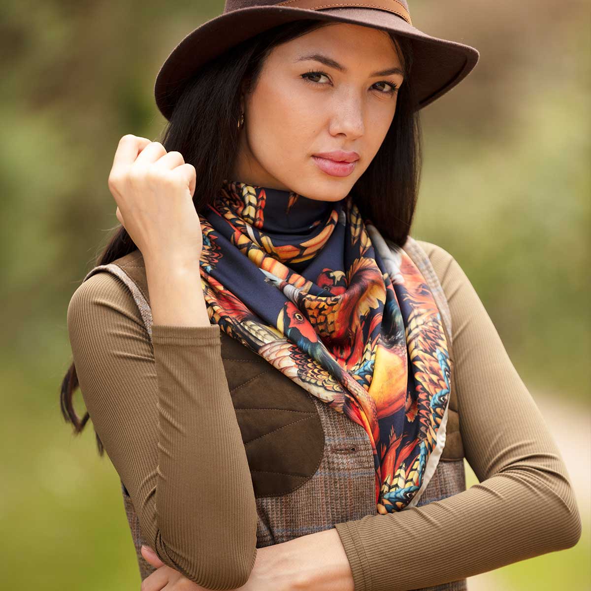 The Large Scarf size offer acres of sumptuous silk, which in turn, make it one of the most versatile and easy to wear sizes in the Clare Haggas portfolio. These rich and powerful colors suit most skin tones. It literally pops when you pair it with anything from a white silk shirt to a smart black suit. The transition from day to night, and work to the weekend is effortless with this incredible piece of wearable art. Why not fold in half and drape around your shoulders and fix with one of the signature scarf rings to add unrivaled class to your outfit.
