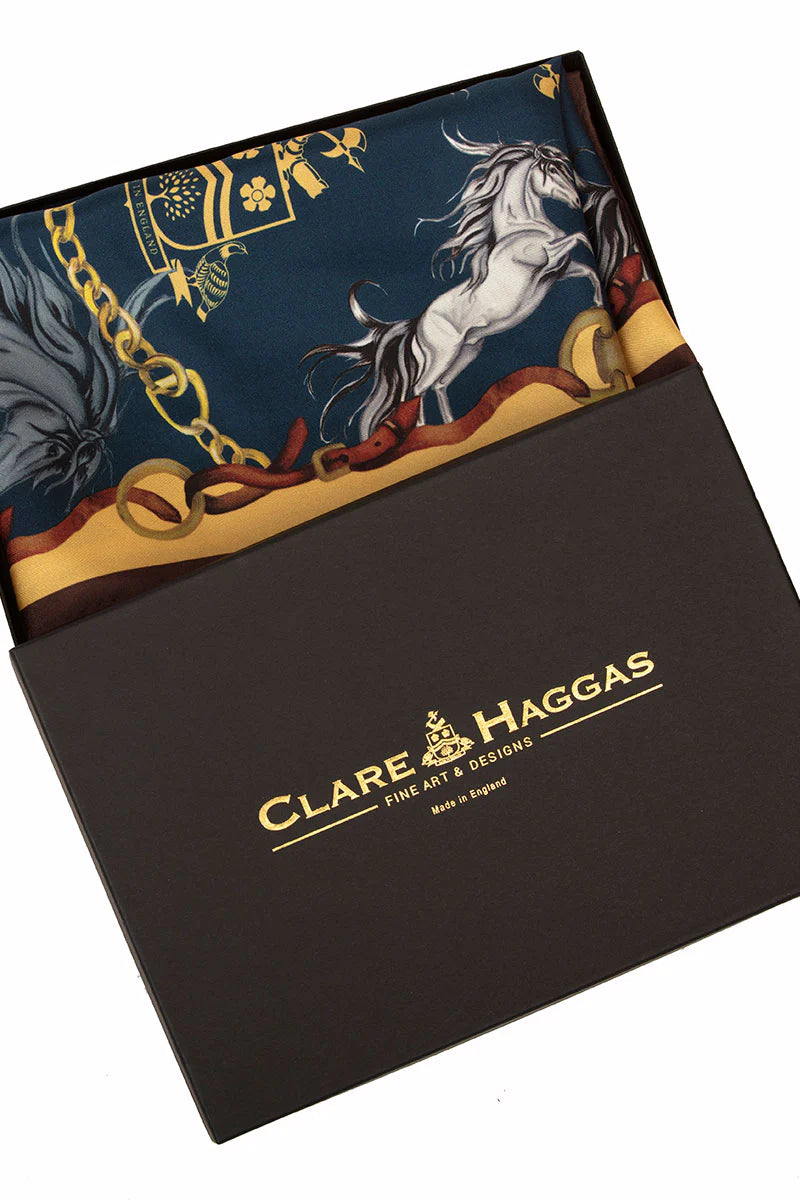 Clare Haggas Designs is delighted to finally present the long awaited Equestrian Collection. Many months were spent perfecting the original artwork, the exuberant colors and the quality of the silk.