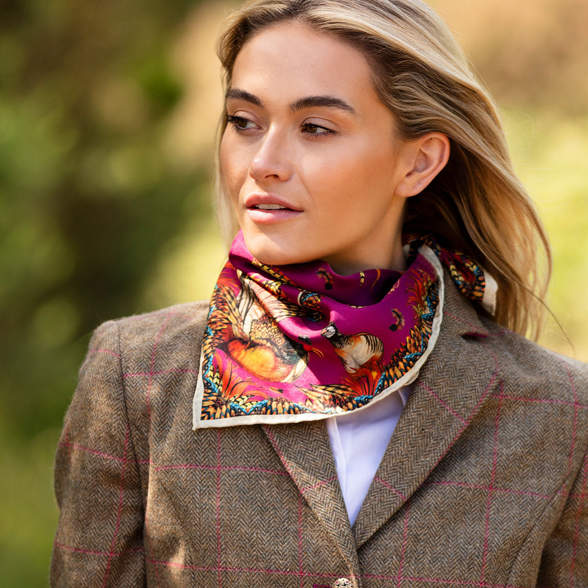 The medium square scarf has been such a popular size since launched a couple of years ago, after various boutiques suggested it would be a good idea. How right they were! Big enough to comfortably wear as a neckerchief without any puckering or pulling, and large enough to roll and tie around the neck in the classic French style, instantly adding glamour to an everyday outfit. This multi-functional size also allows wear as a handbag accessory or tied loosely in your hair. Again like all of Clare Haggas designs, they are more than just your every day scarf.