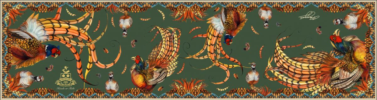 The best way to wear them is simply tied once and worn under a shirt, or paired with a scarf ring and slipped gently through so it is held safely but showing all of the pheasants in all of their glory. You really can’t go wrong if you wear this stunning piece with jeans and a shirt, or have it tied with a scarf ring along with a power suit.