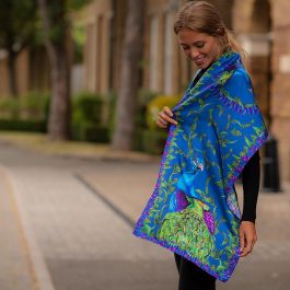 These delightful pieces are made from the finest Wool/Silk blend of 60% Wool and 40% silk and are beautifully soft and feminine, carrying Clare Haggas' trademark art in a powerful way.