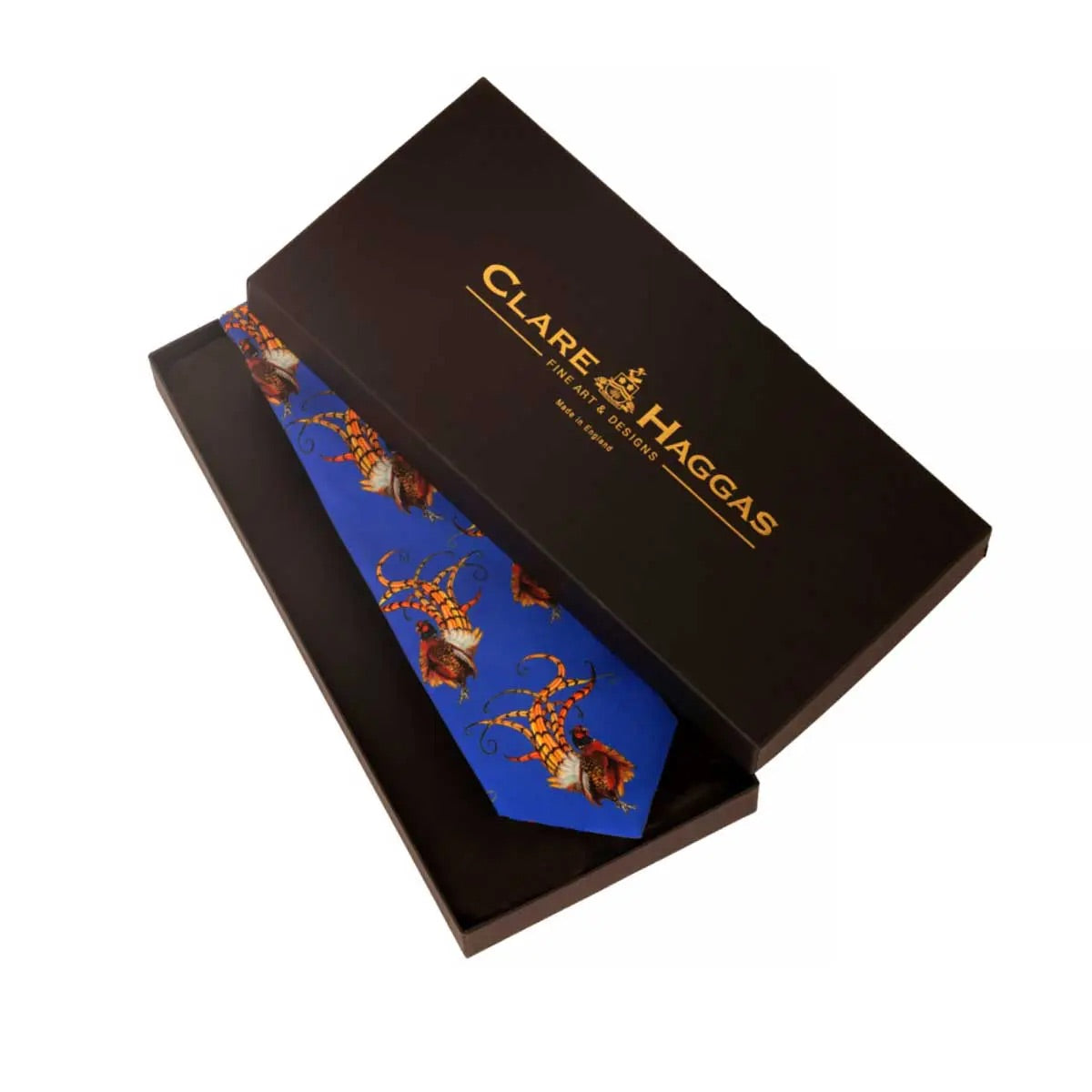 Clare Haggas' silk ties are all limited edition and are accompanied by a signed and numbered certificate of authenticity. They are printed in Evesham on the finest twill silk and then hand finished by a team of artisans in a traditional family run mill in Suffolk. They are then lovingly packed in bespoke boxes by Clare herself in Lincolnshire.