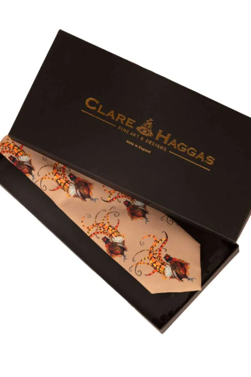 Clare Haggas' silk ties are all limited edition and are accompanied by a signed and numbered certificate of authenticity. They are printed in Evesham on the finest twill silk and then hand finished by a team of artisans in a traditional family run mill in Suffolk. They are then lovingly packed in bespoke boxes by Clare herself in Lincolnshire.
