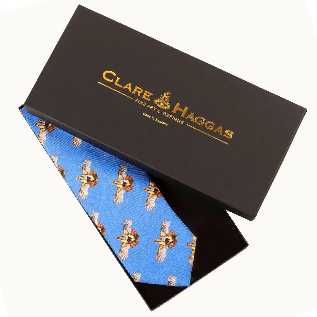 Clare Haggas' silk ties are all limited edition and are accompanied by a signed and numbered certificate of authenticity. They are printed in Evesham on the finest twill silk and then hand finished by a team of artisans in a traditional family run mill in Suffolk. They are then lovingly packed in bespoke boxes by Clare herself in Lincolnshire.