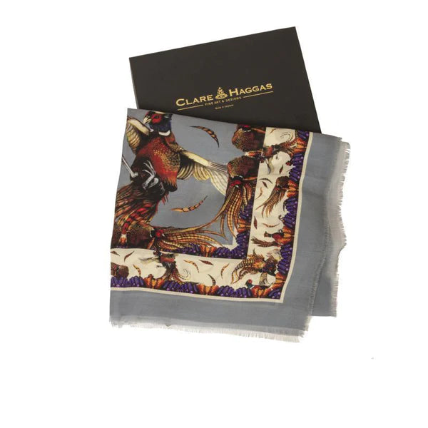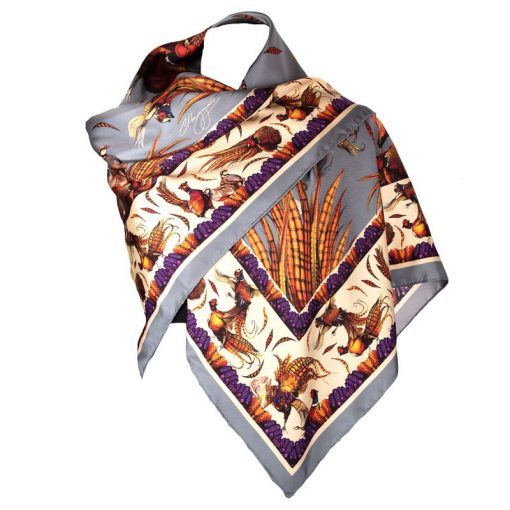 Gorgeous George was a painting created by Clare Haggas, and immediately she knew his wild tail and cheeky face had to be the masterpiece for a new scarf design. Although he couldn’t be alone, hence she added some of his closest mates, and George and Friends was born.