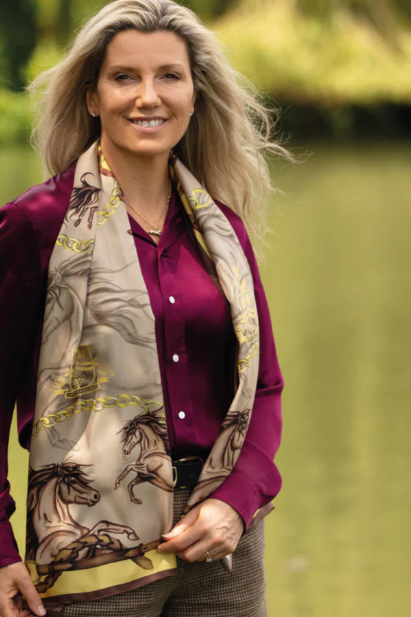 Hold Your Horses Wool/Silk Blend Wrap in Toffee & Gold