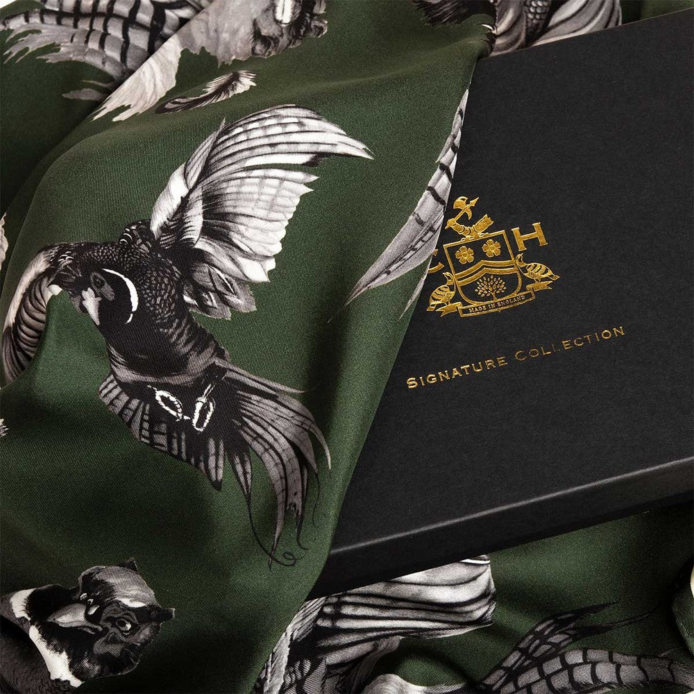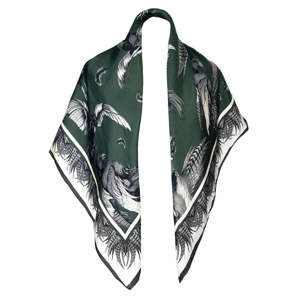 The Monochrome line is part of The Signature Collection of Clare Haggas' most refined and luxurious finest twill silk scarves. The Monochrome designs take Clare Haggas' iconic painting Turf War and placed them on a modern and flamboyant background, thus creating images that will never date and will complement your wardrobe for years to come.