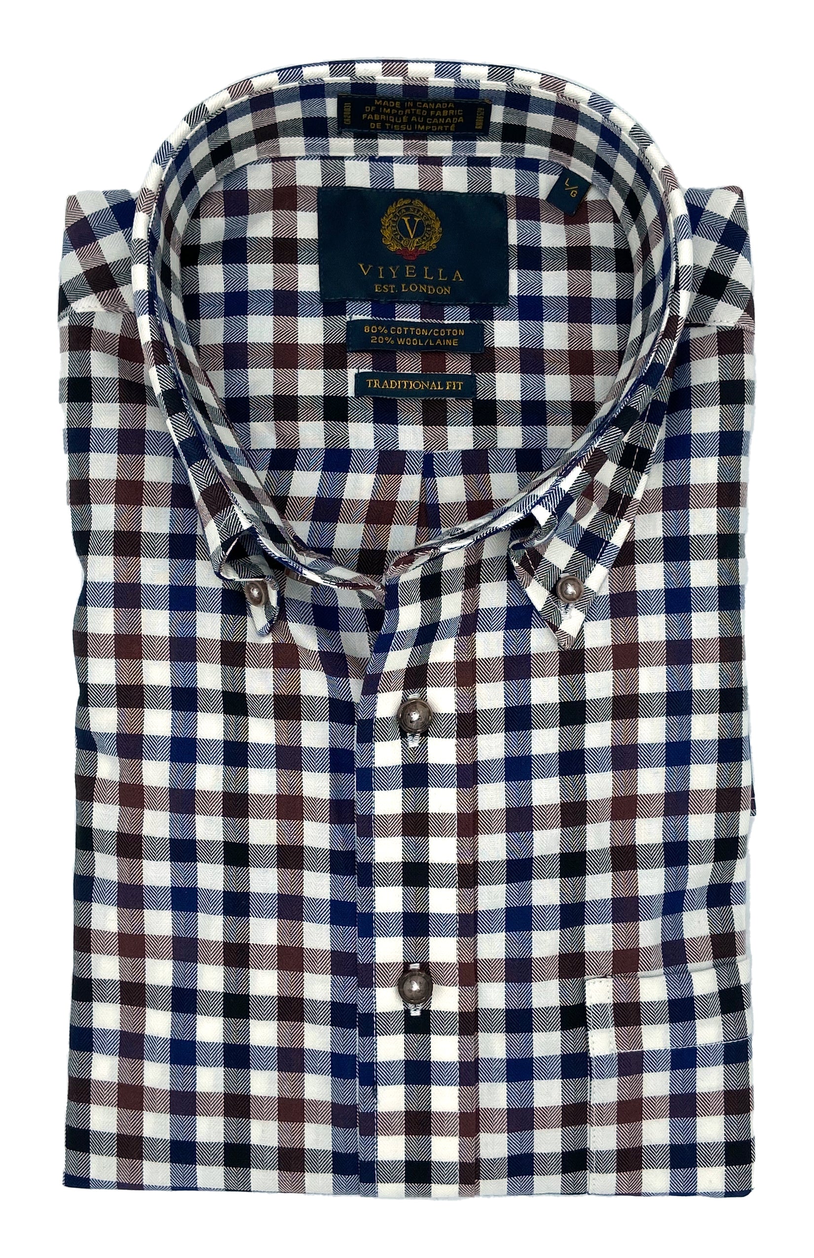 The Viyella Men's Button-down Shirt is a timeless wardrobe staple perfect for the modern man. Blending 80% cotton for comfort and 20% wool for a luxurious touch, this stylish button-down is a great addition to any outfit and perfect for any occasion.