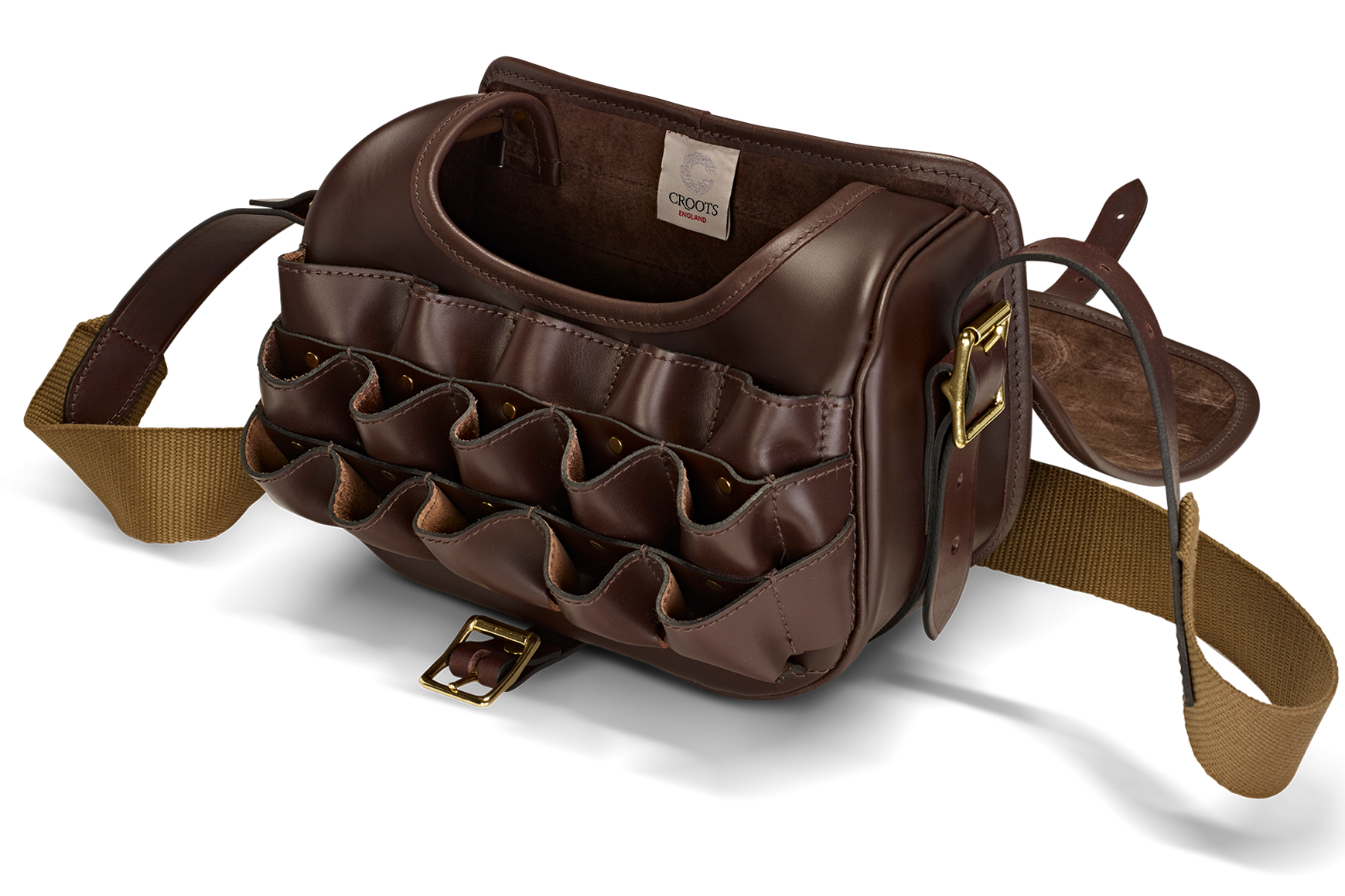 The Byland Leather Loaders Bag is hand-made in Malton, England and is designed to enable quick loading. The special craftsmanship of this Croots design offers an open storage space for 150 cartridges, plus the special feature pockets add quick access to 15 more pairs of cartridges mounted on the front.