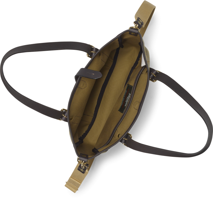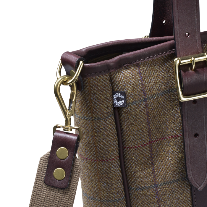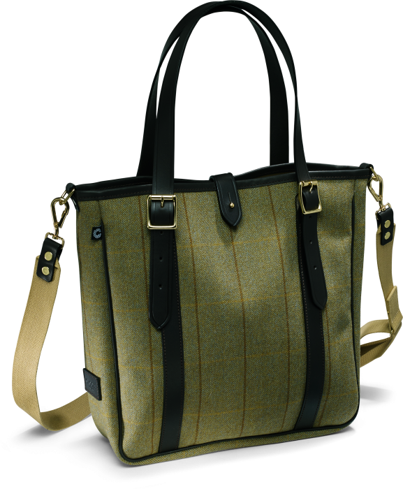 The Hemsley Tweed Tote is a classic shopper-style bag.  The leather handles can be set to carry over the shoulder or by hand.  The detachable cotton webbing sling also gives the option for shoulder carry.  Combined with vegetable-tanned bridle leather straps and trims with solid brass hardware, heavy cotton webbing, and hand-stitched detail throughout, these stylish bags are as at home in the city as they are walking on the moors or picnicking in the fields.