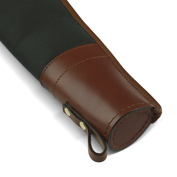 The Rosedale collection of gun slips and cartridge bags is made from Croots original 100% cotton canvas. The heavyweight fabric is laminated with natural rubber to provide 100% waterproofing, plus greater weight and durability. Crafted using vegetable-tanned bridle leather straps and trims, solid brass buckles, and hand-stitched detail throughout, the Rosedale Canvas line in Loden Green is not only beautiful, but also sophisticated and reliable.