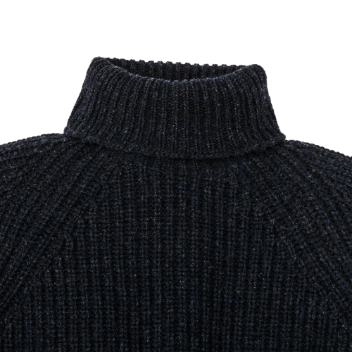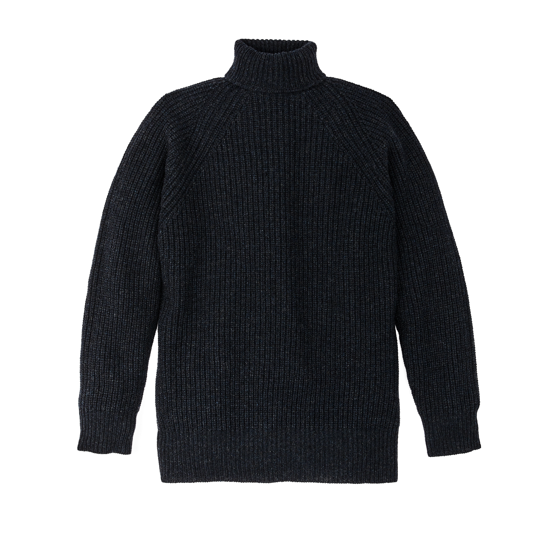 The Bristol Roll Neck Sweater is a classic design knitted with a distinct vertical rib that adds warmth and structure. The extended, folded-over collar provides warmth for the neck, a design common in historic sweaters worn by fishermen and sailors. The sturdy rib-knit cuffs and hem provide ample stretch and retain their structure.