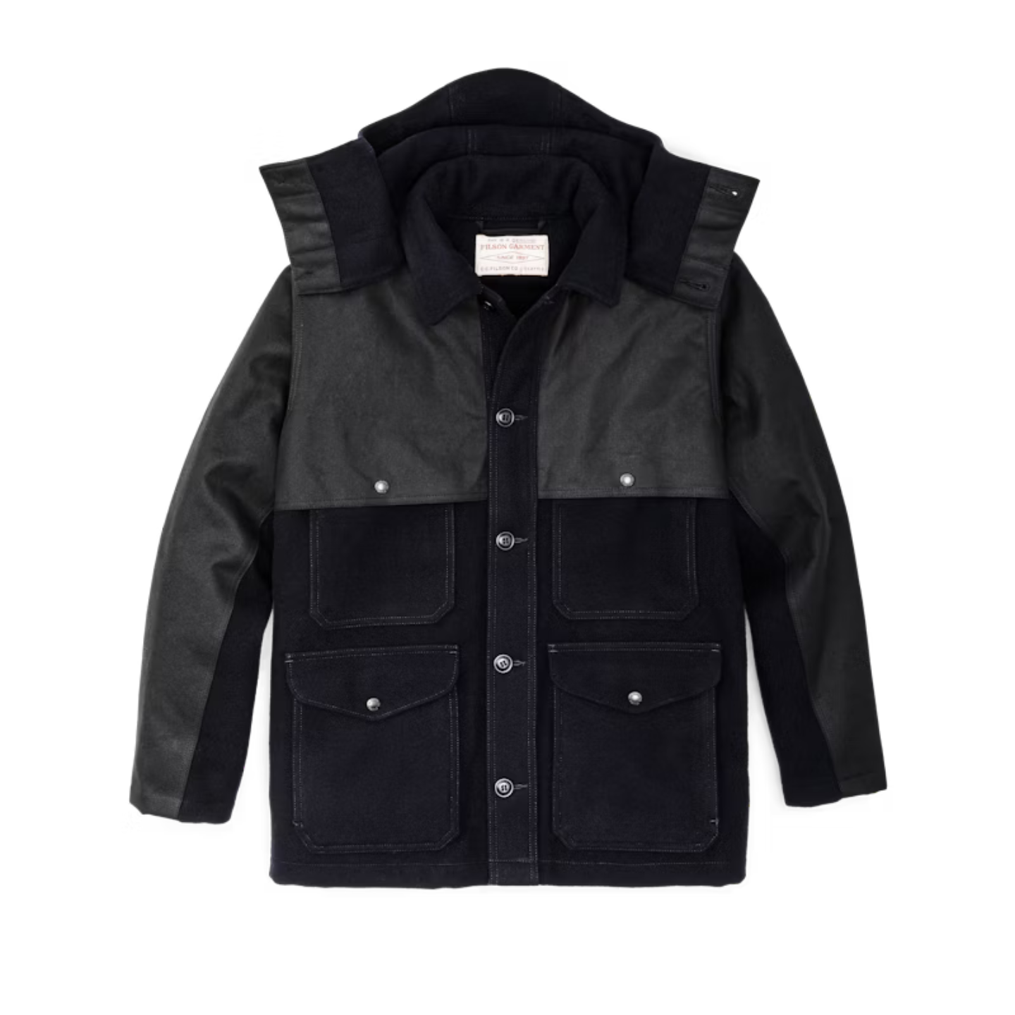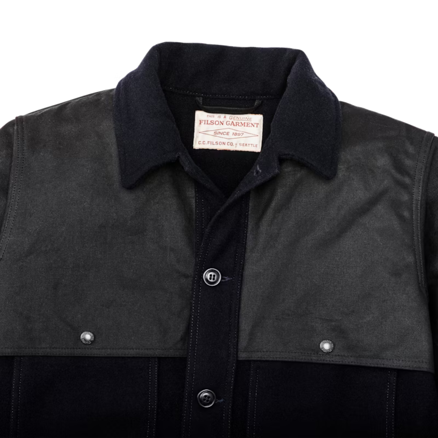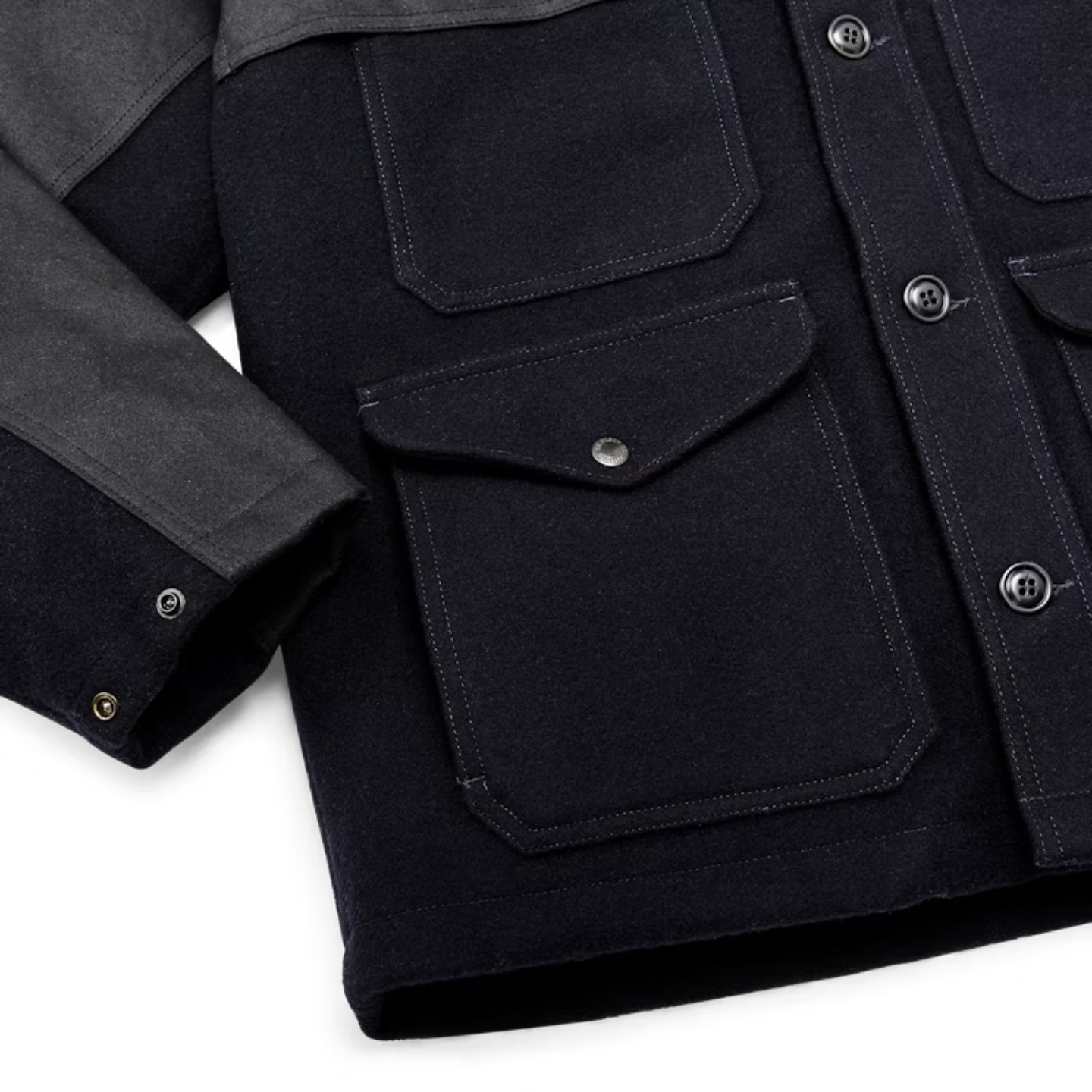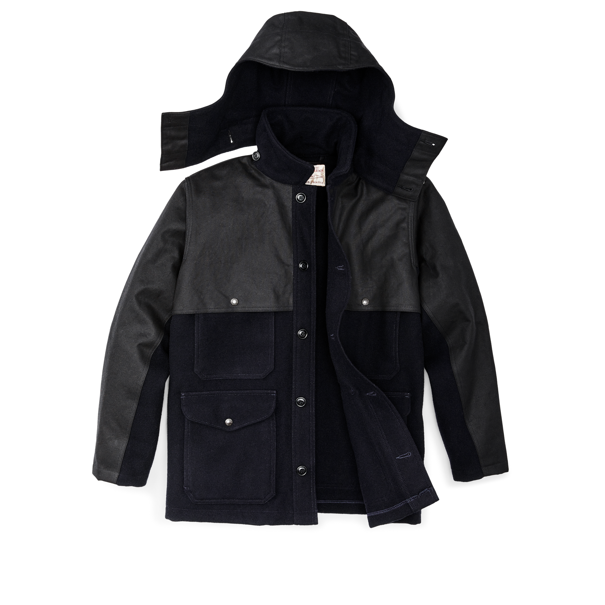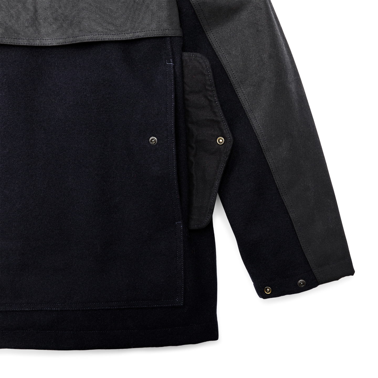 The Double Coat is made with Filson's iconic Mackinaw Wool and reinforced with a layer of waxed cotton Tin Cloth over the shoulders and arms. This combination provides unrivaled protection against rain and snow while maintaining outstanding breathability through the torso.