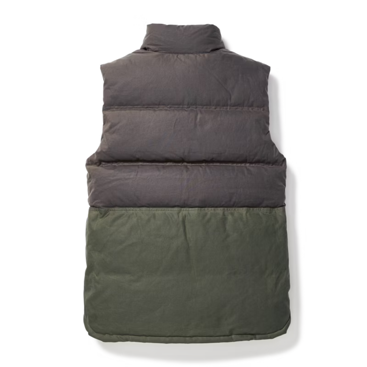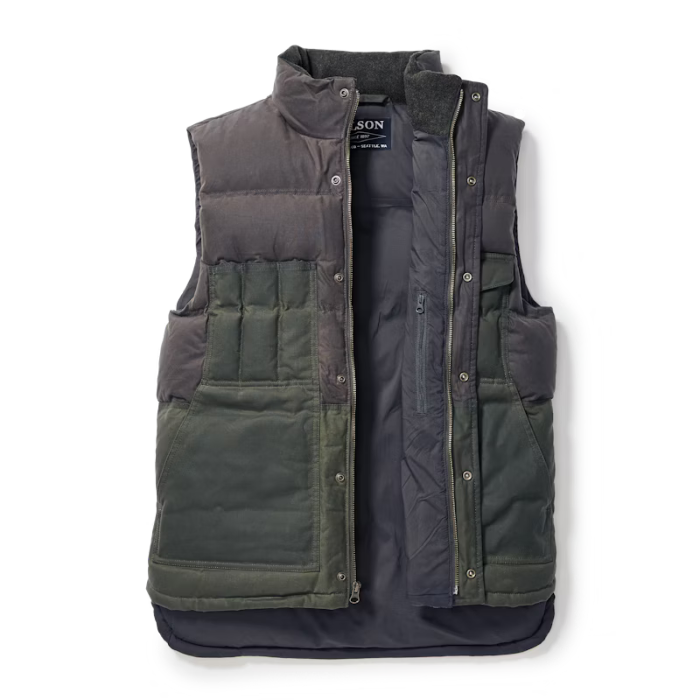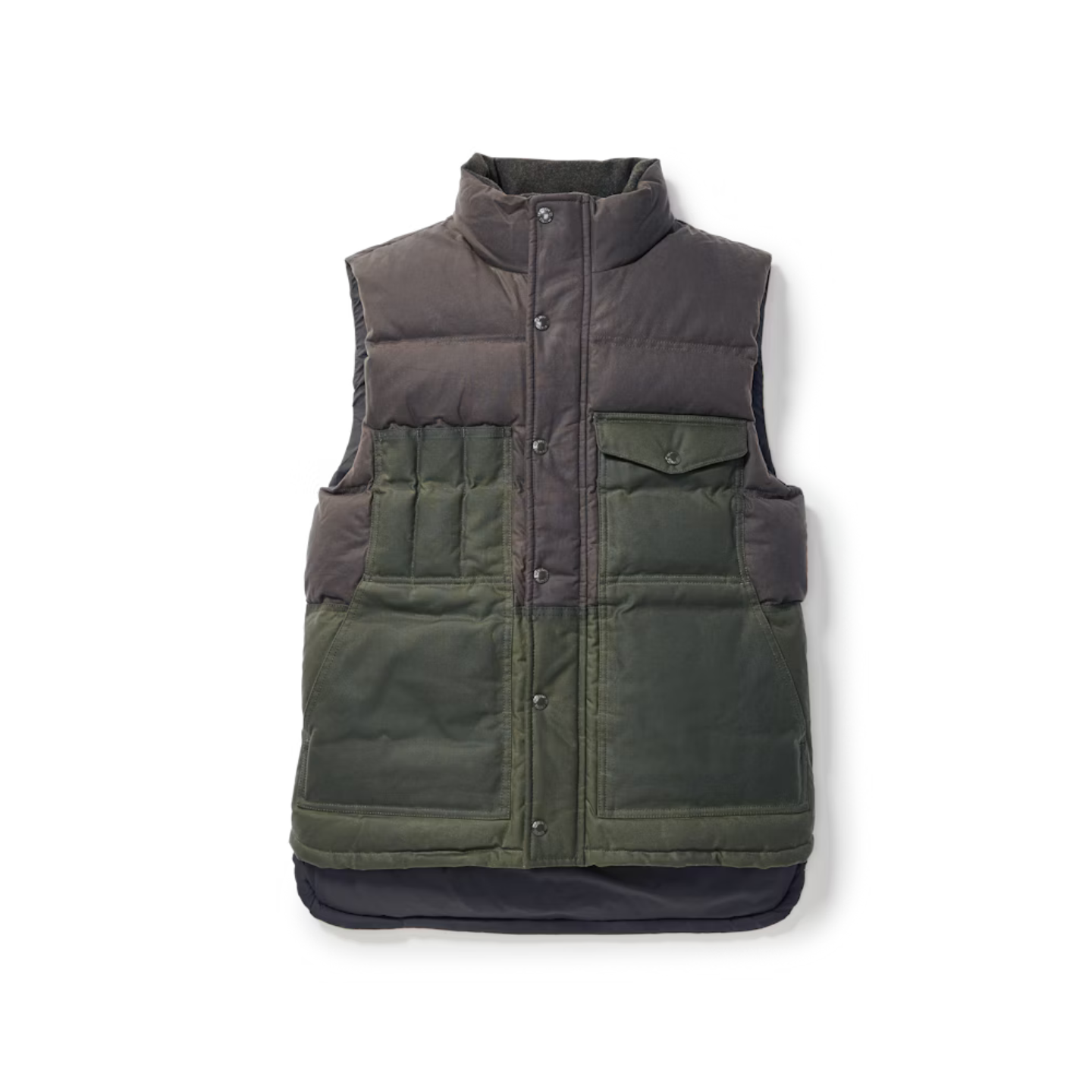 A warm, versatile layer that can be worn on its own or layered under a jacket. Built with some of Filson’s most-proven signature materials, combined with the warmest and lightest-weight insulation nature can provide, this vest is the ultimate tool for keeping your core warm in cold weather. The goose down traps body heat like nothing else can, and our oil finish fabrics keep it dry so it can do its job. When highly-active use demands maximum breathability and freedom of movement, insulating your core with Filson's Down Cruiser Vest is an ideal solution.