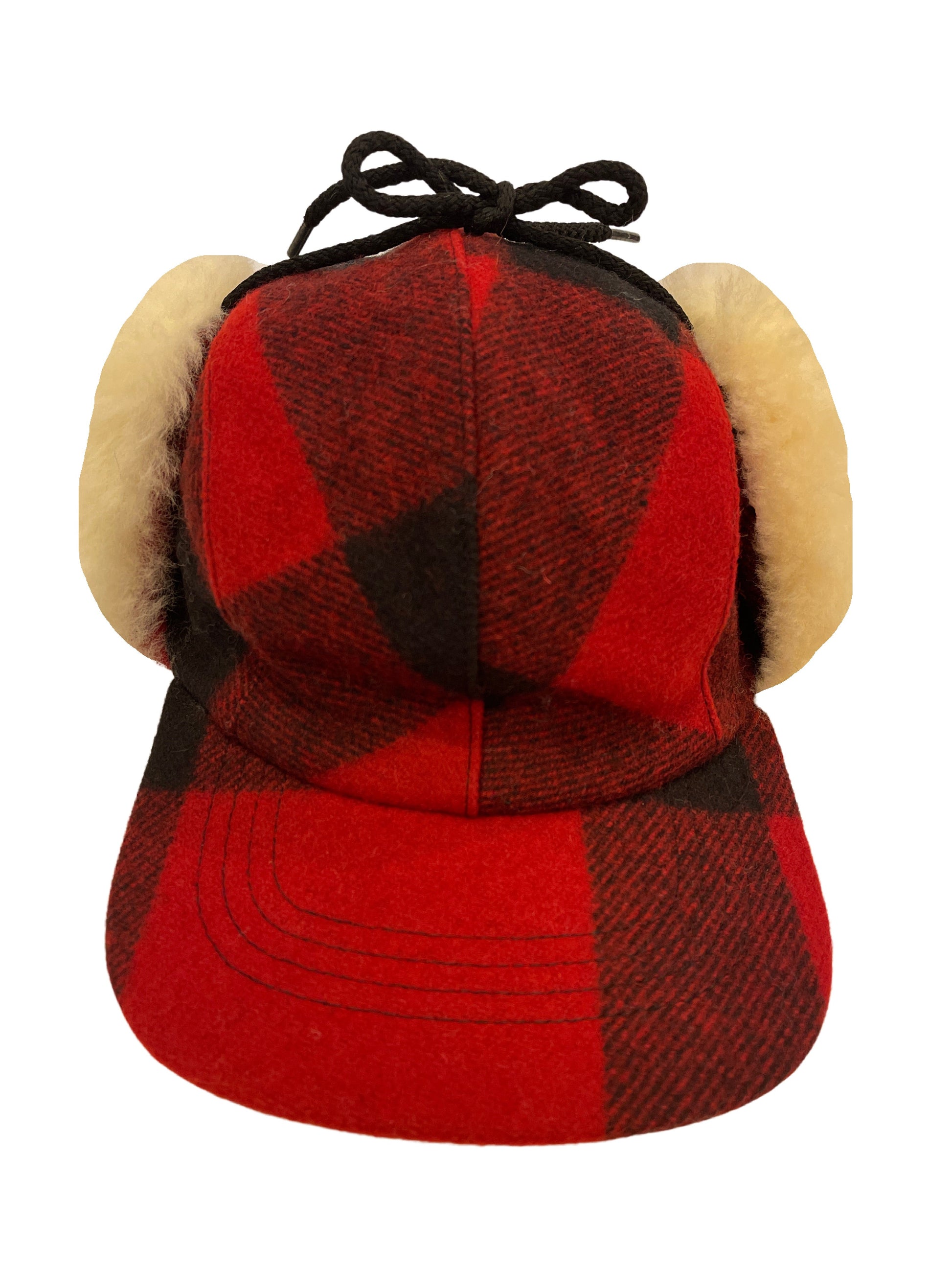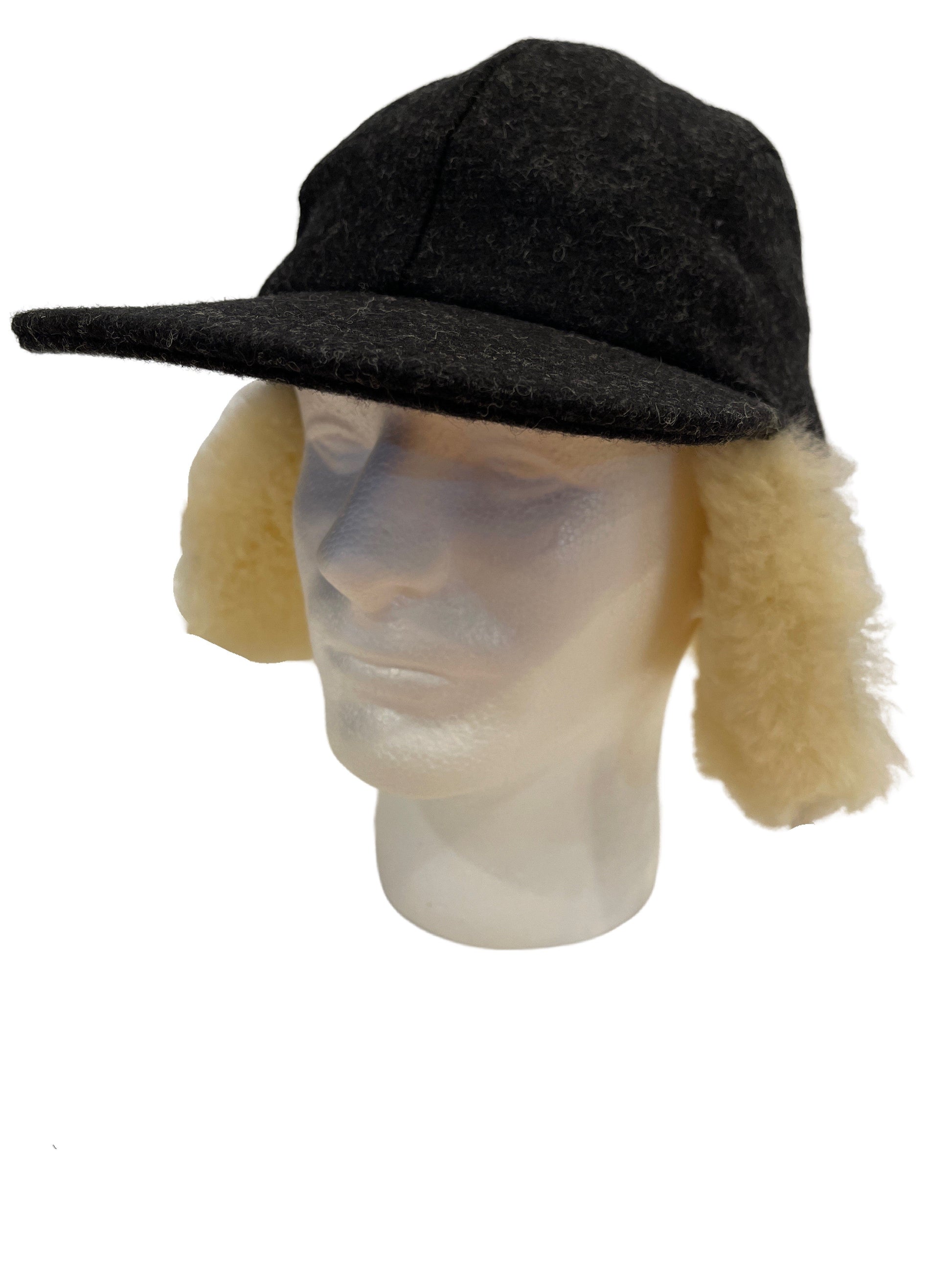 A classic insulated wool cap with tie-back shearling-lined earflaps and an insulated crown.