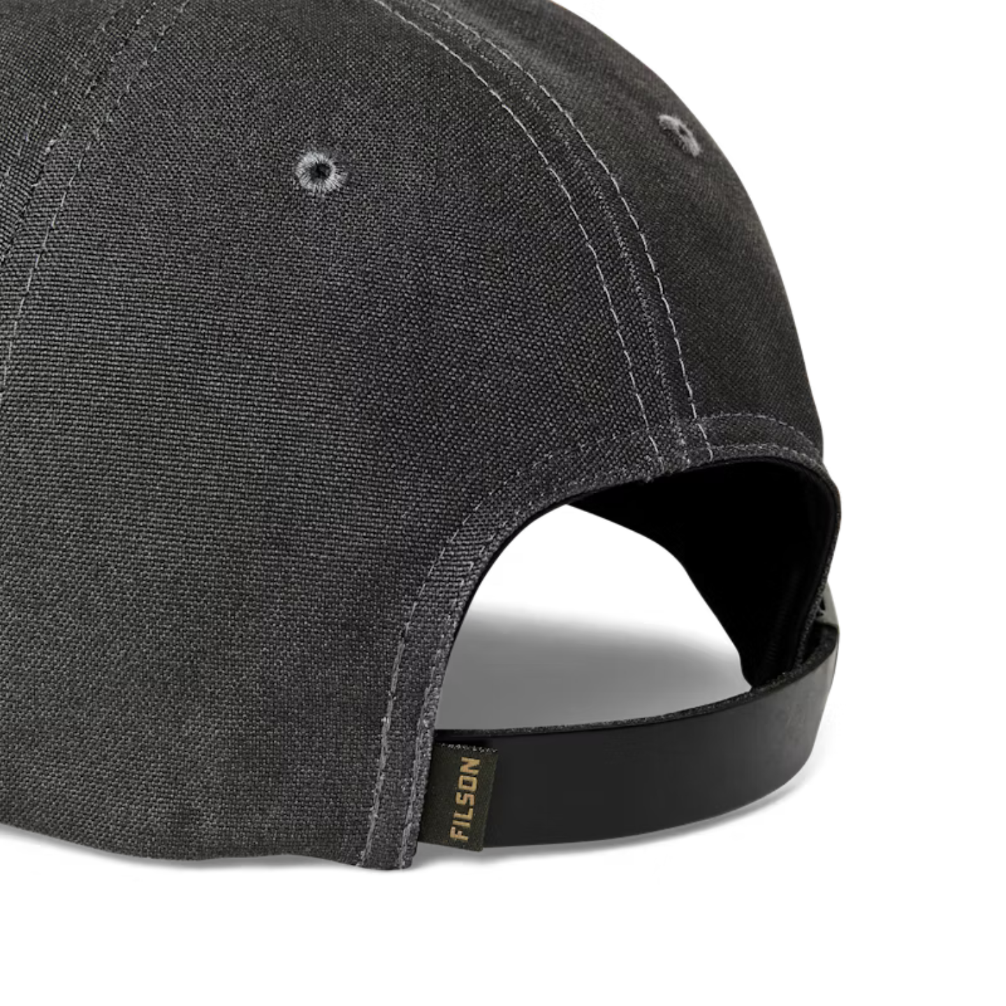 This 6-panel cap features a crown shape with a slightly lower, more rounded profile than a classic trucker cap. Built for decades of service, the fabric is the same durable Filson canvas trusted by hunters and foresters for nearly a century. 3” precurved brim. The leather adjusting strap assures a secure custom fit. Embroidered grommets in crown to shed excess heat.