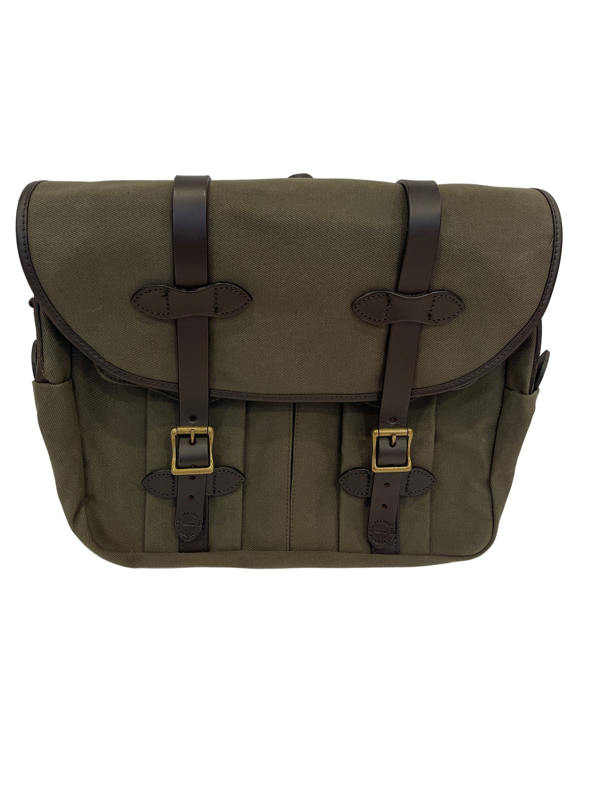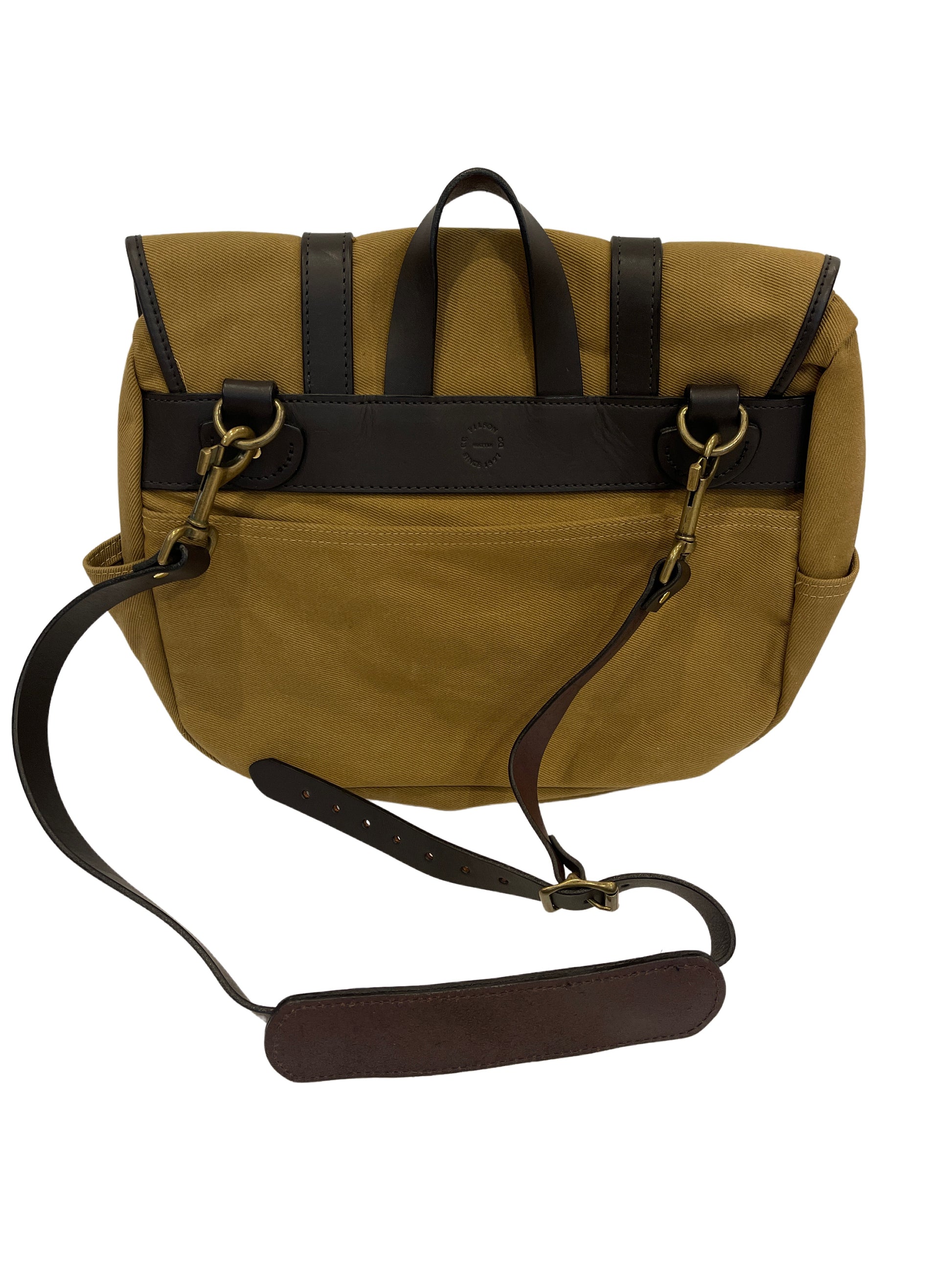 One of the earliest bags introduced in Filson's Rugged Twill collection, it was originally envisioned as a bag for lunch, a light raincoat, and other field necessities. Its practical utility has made it much more than a field bag over the last three decades, earning a favored status for travel, everyday carry, and countless other applications. Rather than waxed canvas, Rugged Twill was chosen for its exceptional abrasion resistance. This industrial-strength fabric comes from Britain’s oldest, most storied mills, and is lightly waxed to keep valuables dry and protected from the elements. The Bridle Leather for the shoulder strap, grab handle, and trim is strong and durable enough for horse tack. It’s been slowly vegetable-tanned over several weeks in natural plant-based solutions that transform top-grade cowhides into sturdy, supple, and lustrous leather that molds to the shape of your shoulder over decades of use.