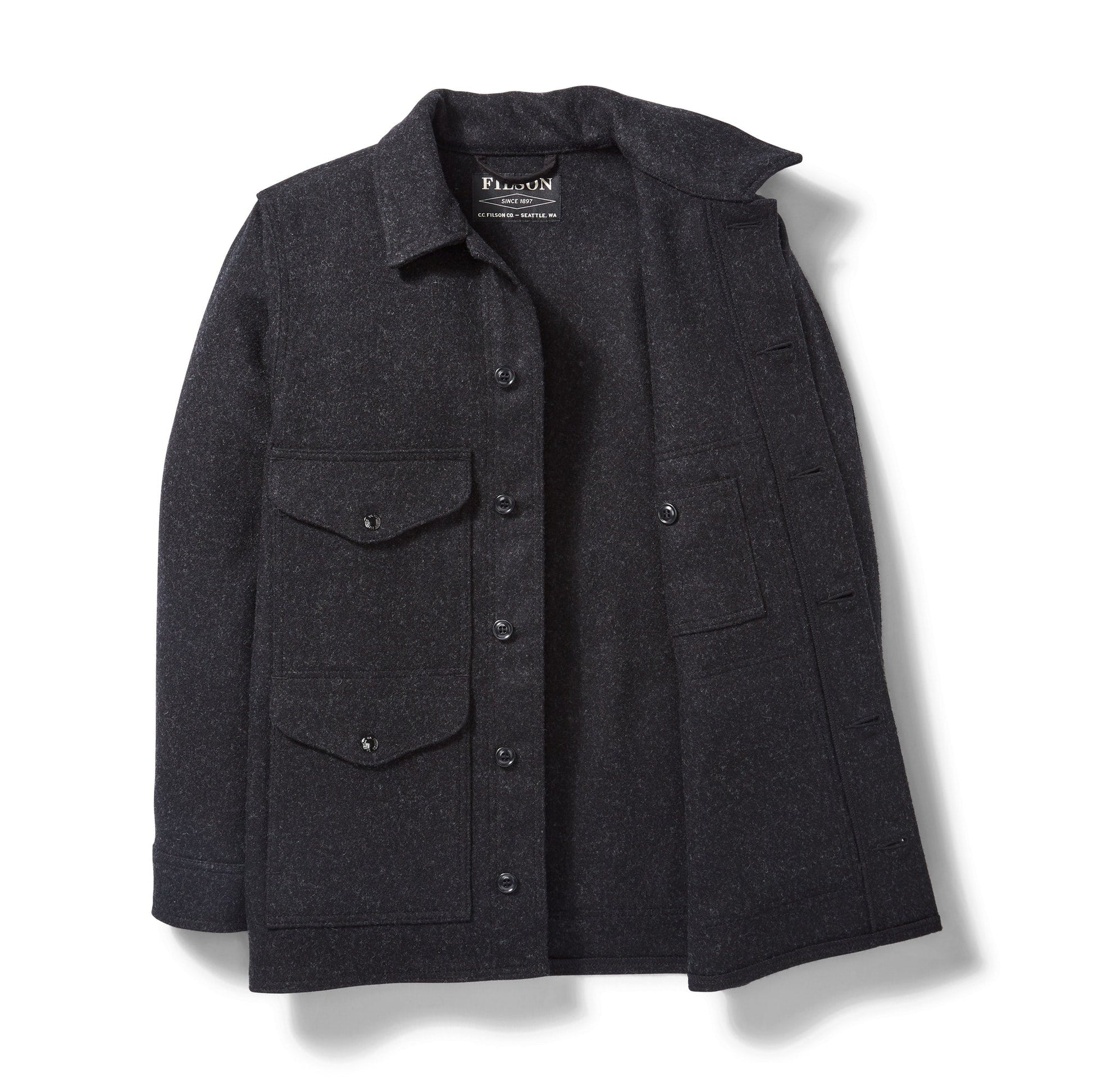 Filson's iconic Mackinaw Cruiser jacket, patented in 1914 - a wool coat with over 100 years of proven reliability. Made of 100% virgin Mackinaw Wool for comfort, natural water-repellency, and insulating warmth in any weather conditions. Nine total pockets make this warm jacket ideal for working, hunting, and everyday use.