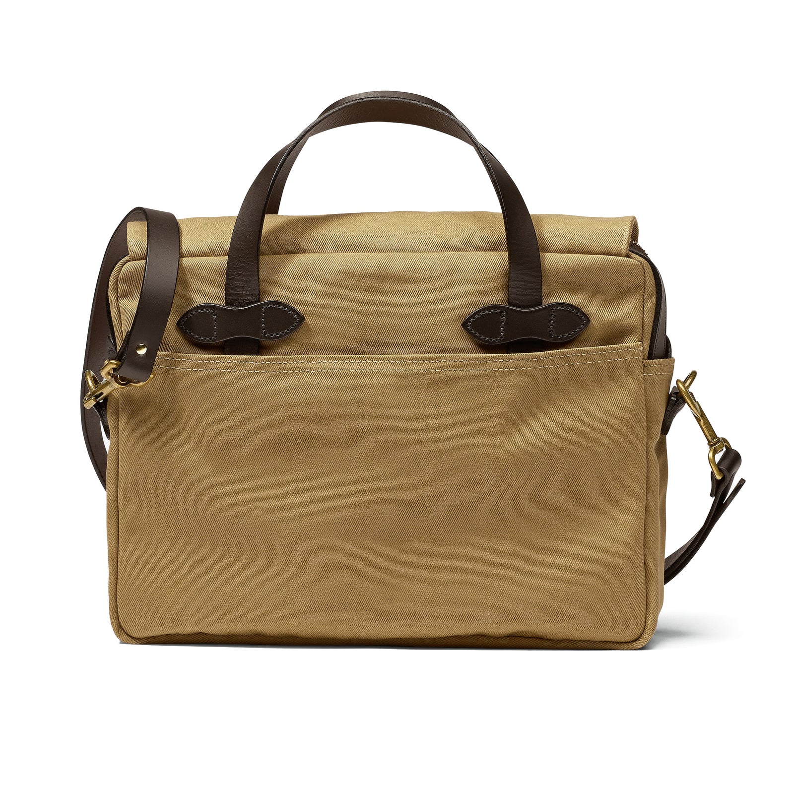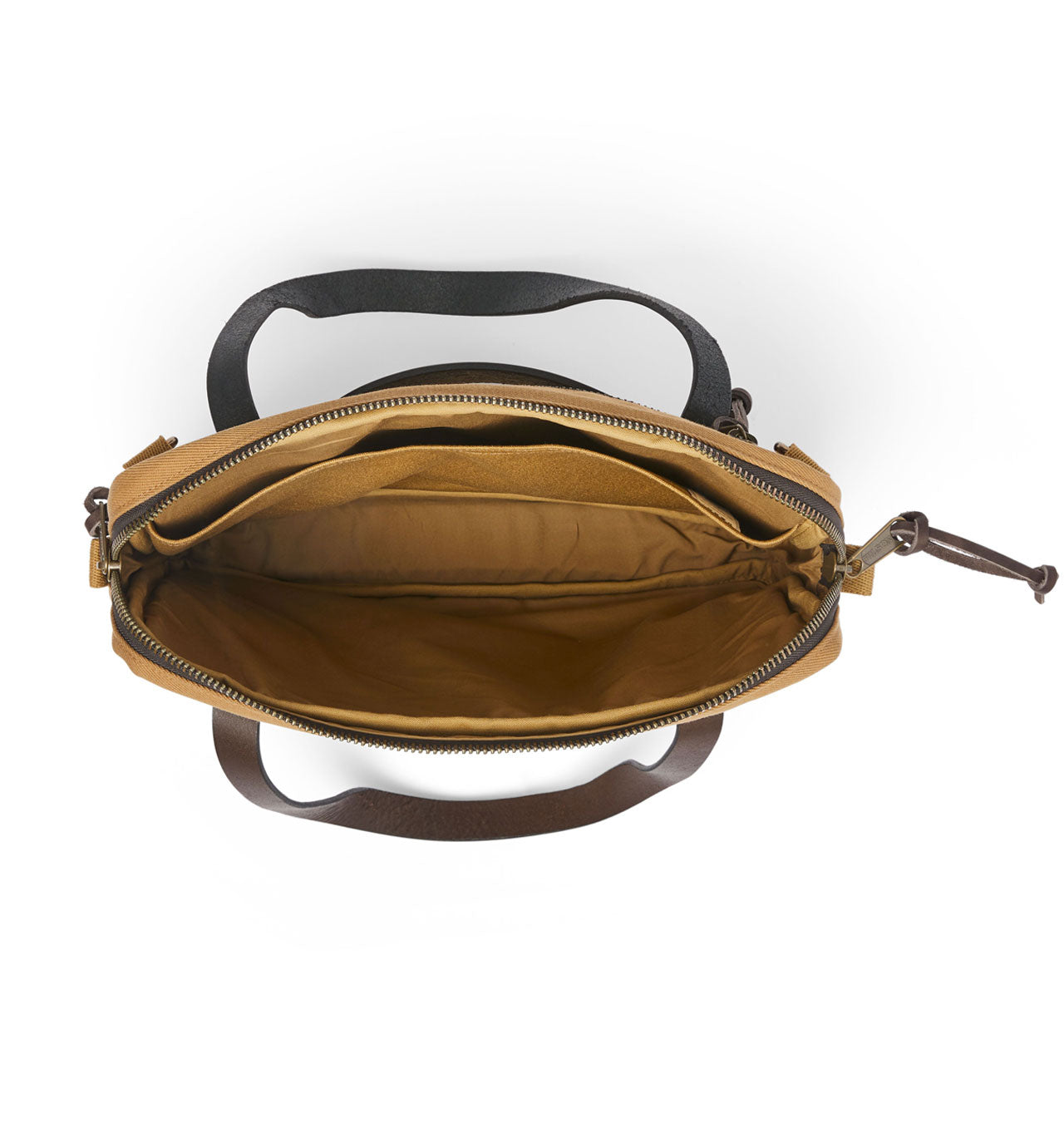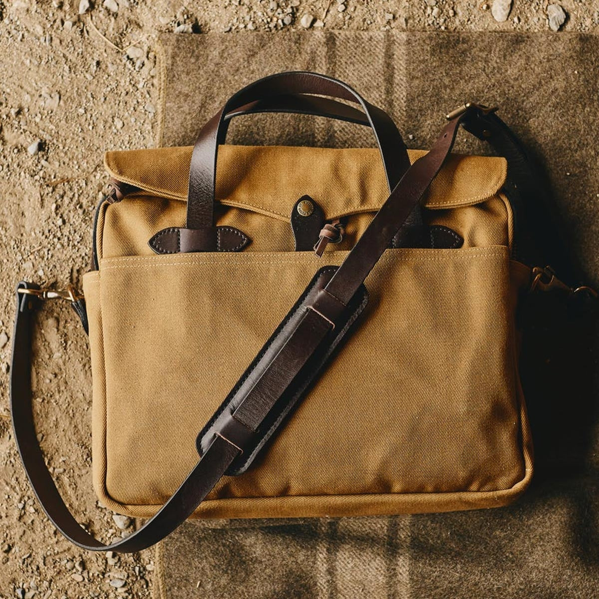 This iconic briefcase is made with Rugged Twill, bridle leather and solid brass hardware. Embodying the philosophy that has guided Filson for 125 years: manufacture uncompromising products using the best available materials and construction, products that withstand the rigors of daily use for years on end, that are handed down rather than tossed out. Nearly three decades after its introduction, Filson's iconic briefcase remains a testament to the old-fashioned idea that if a thing is worth doing, it’s worth doing right.