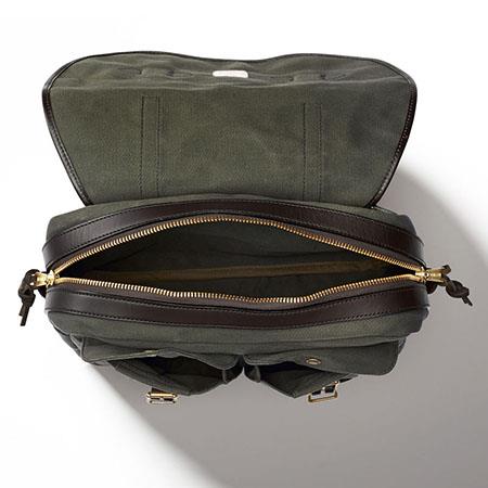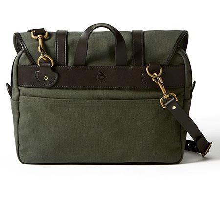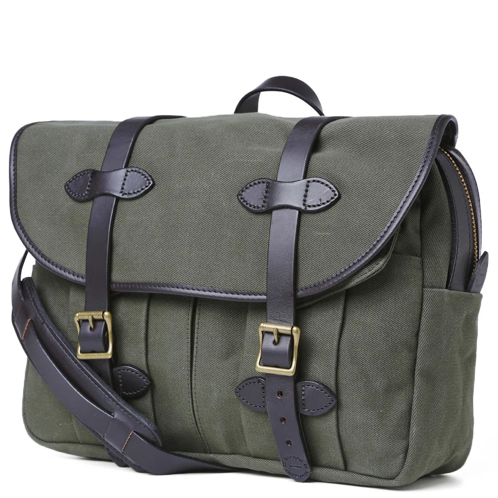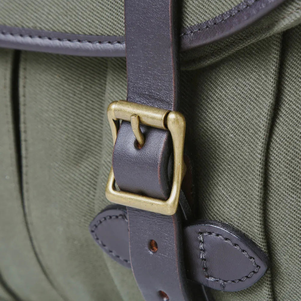 A bit of a briefcase, a bit of a field bag. The rectangular shape of this bag makes it feel a little more formal than the Field Bag, but with all the Filson reliability, durability, and charm. No longer in production from Filson, available in Otter Green in limited numbers from Cascade Ranch Outfitters.