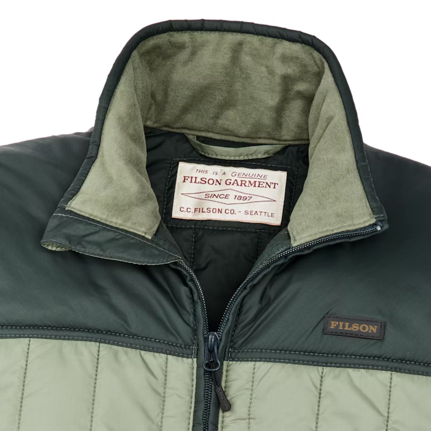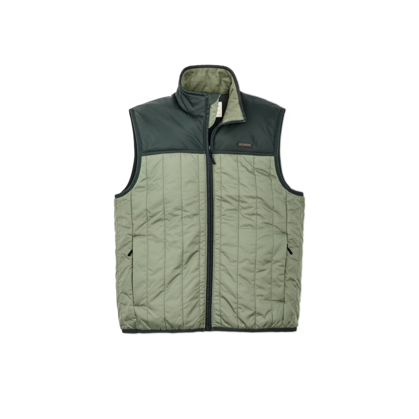 The Filson Ultralight Vest is a lightweight packable layer that provides warmth, dry or wet.