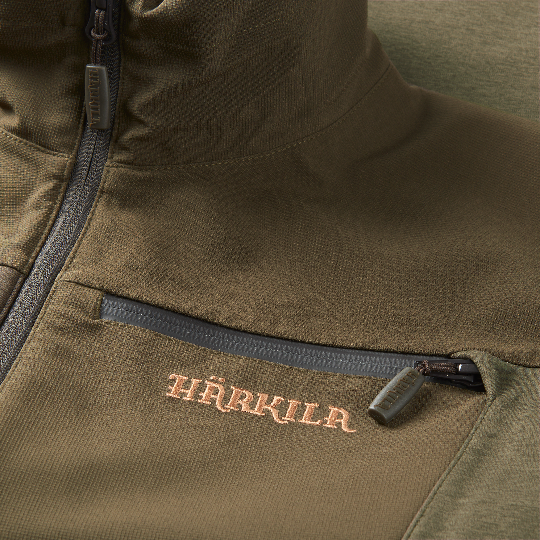 The perfect hybrid jacket for the active hunter.  Harkila Hybrid System combines comfort and freedom of movement.  Breathable, windproof body and under-sleeve panels.  Breathable, waterproof material on collar, shoulders and sleeve tops.