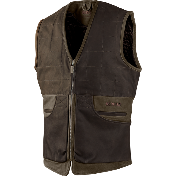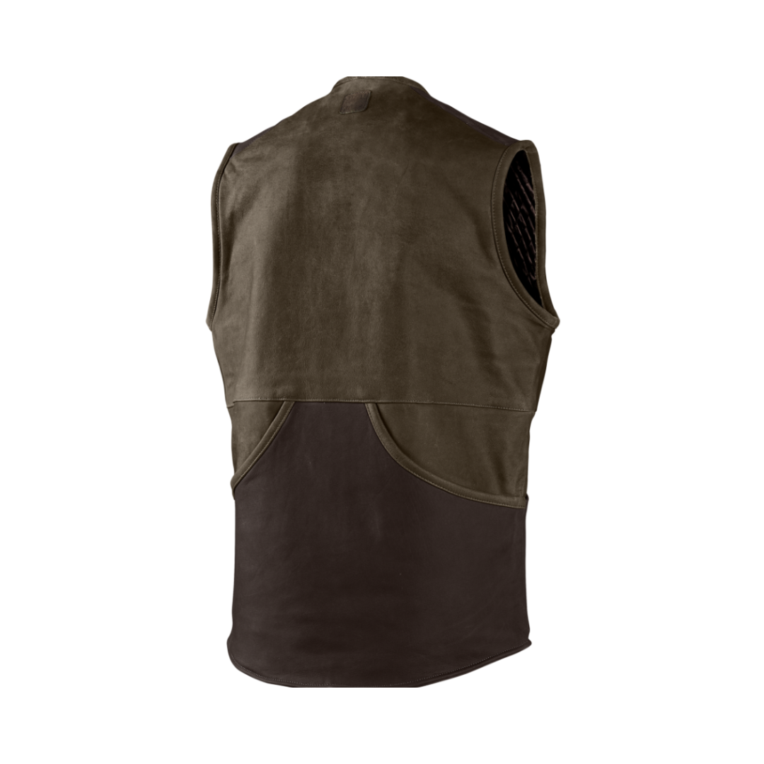 This hard-wearing waistcoat in premium leather sports several practical features, traditional and innovative. The genuine leather provides protection from the elements and silent movement while stalking. Comfort and quality are sewn in with 5 exterior pockets, 3 interior pockets, and an easy zip front closure. Tradition and innovation meet in this superior waistcoat from Harkila.