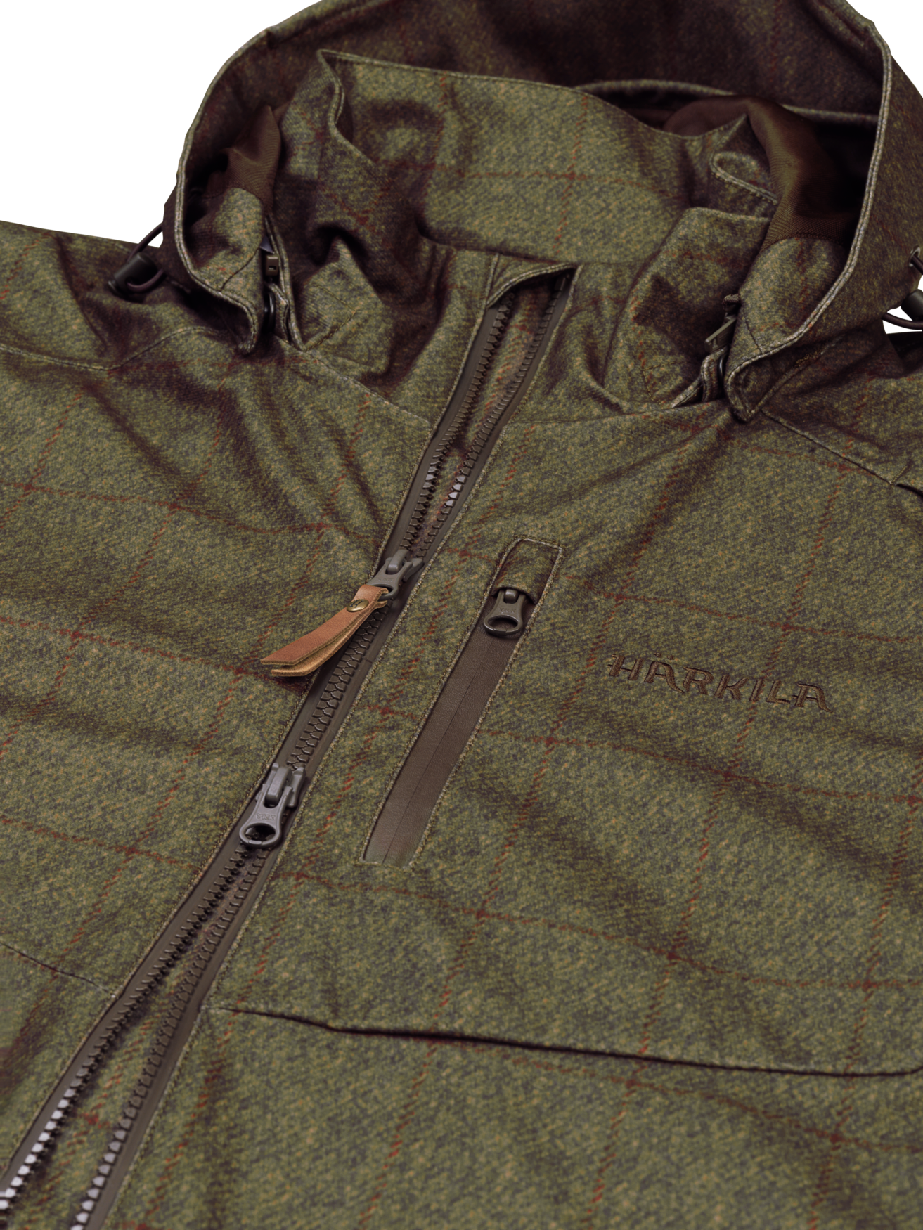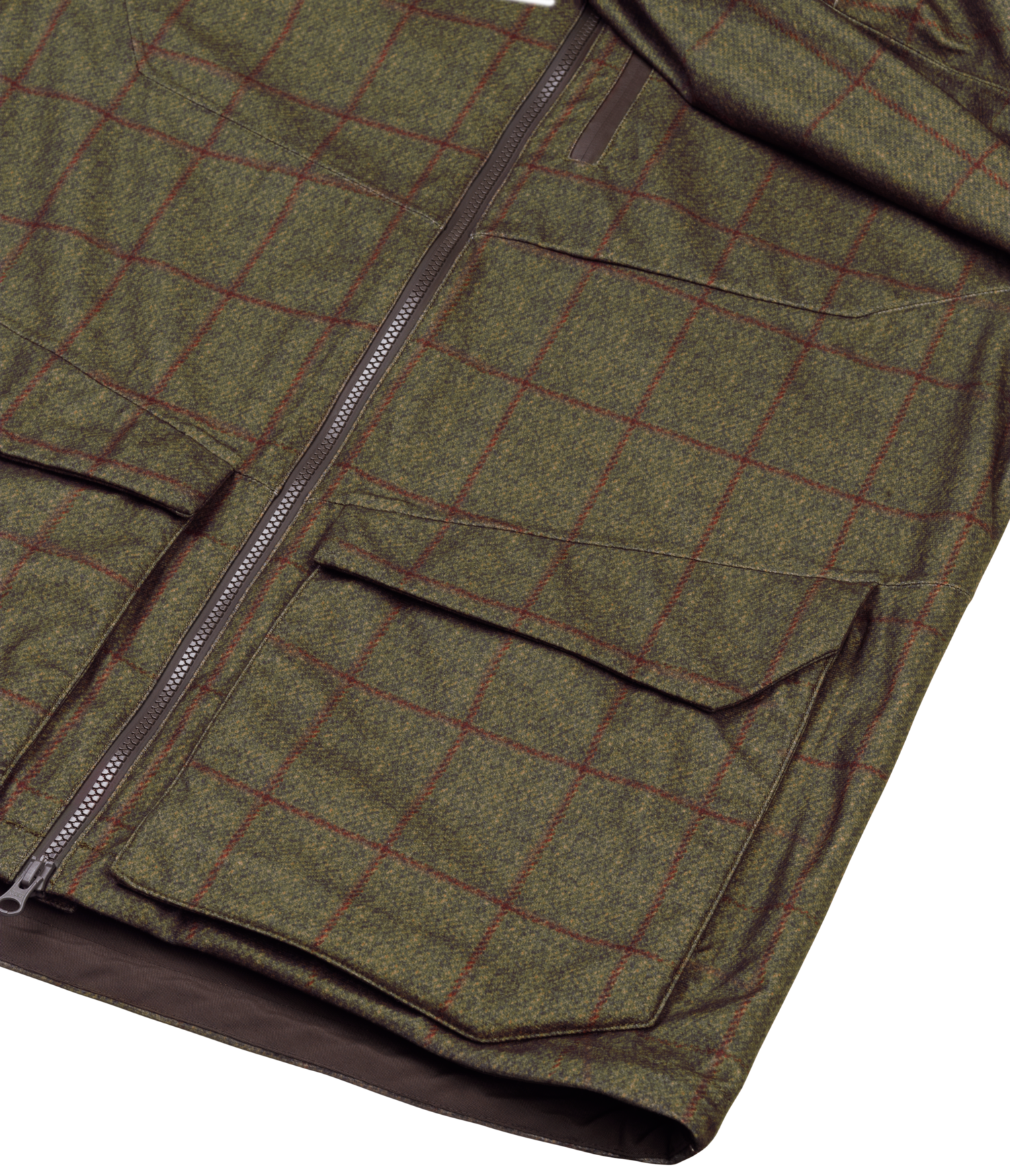 The Stornoway Active Jacket is a modern update of the classic tweed fieldsport jacket. Made from a soft fabric with a printed tweed pattern, the jacket features a windproof and waterproof HWS membrane. Unlike an ordinary tweed jacket, this has the benefit of not taking up water. This makes the Stornoway Active Jacket the prime choice for the active sportsman in changeable weather conditions who wants to combine modern functionality with classic looks. Pair with our other Stornoway pieces for an innovative take on a traditional look. Available in Cottage Green.