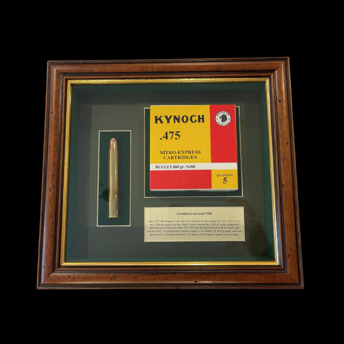 These beautiful Cartridge Boards feature a decorative wood and glass frame, green wool felt background, and clear descriptions. They can be displayed separately or combined to create an informative display of these iconic cartridges. Custom made by The Sporting Gentry, leader in Sporting design.