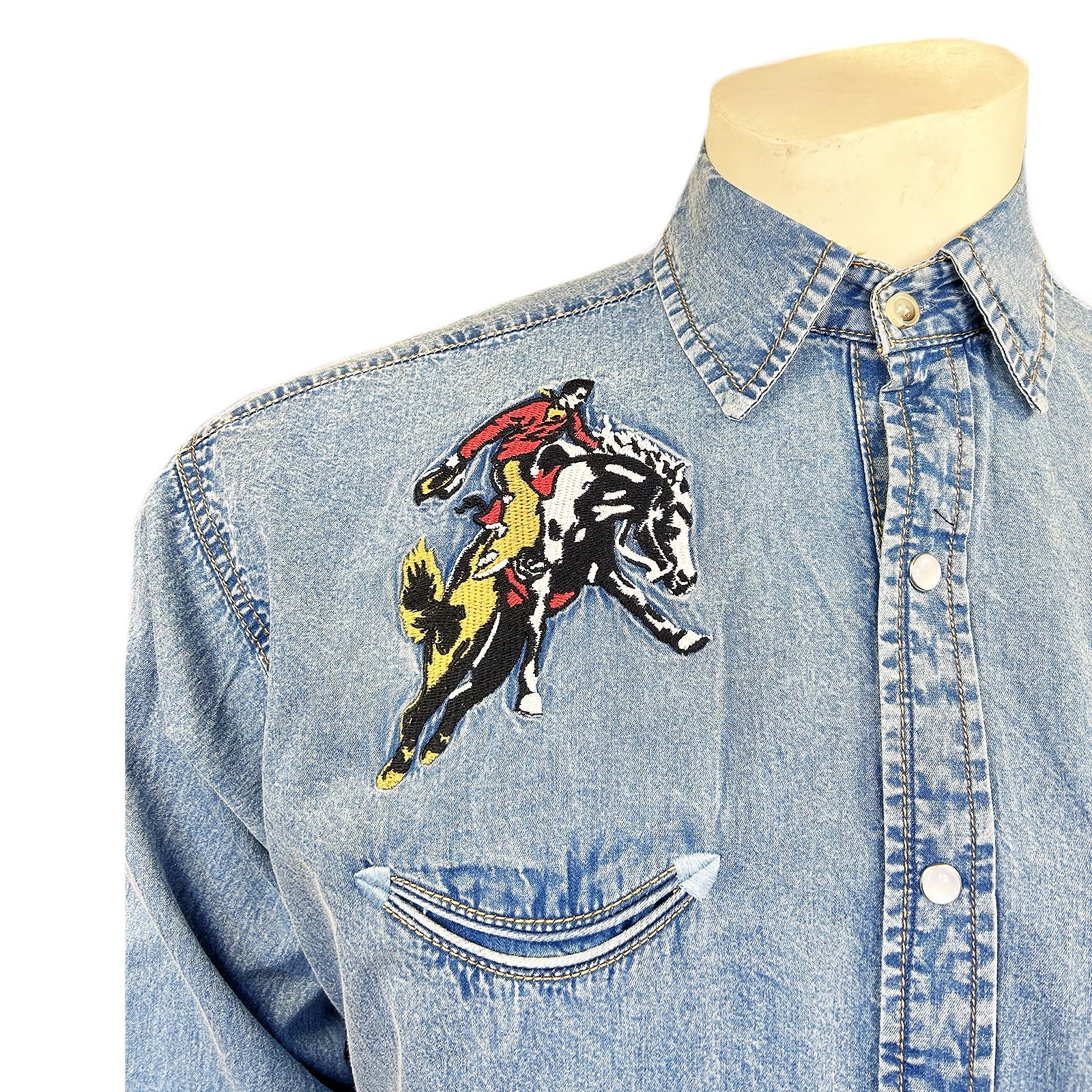 Men’s Vintage Denim Bronc Embroidered Western Shirt