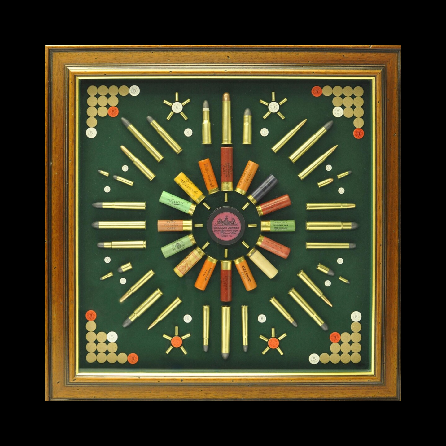 Paper Cases / Metallic British Display. Roll turn over cartridges and famous English sporting calibers.