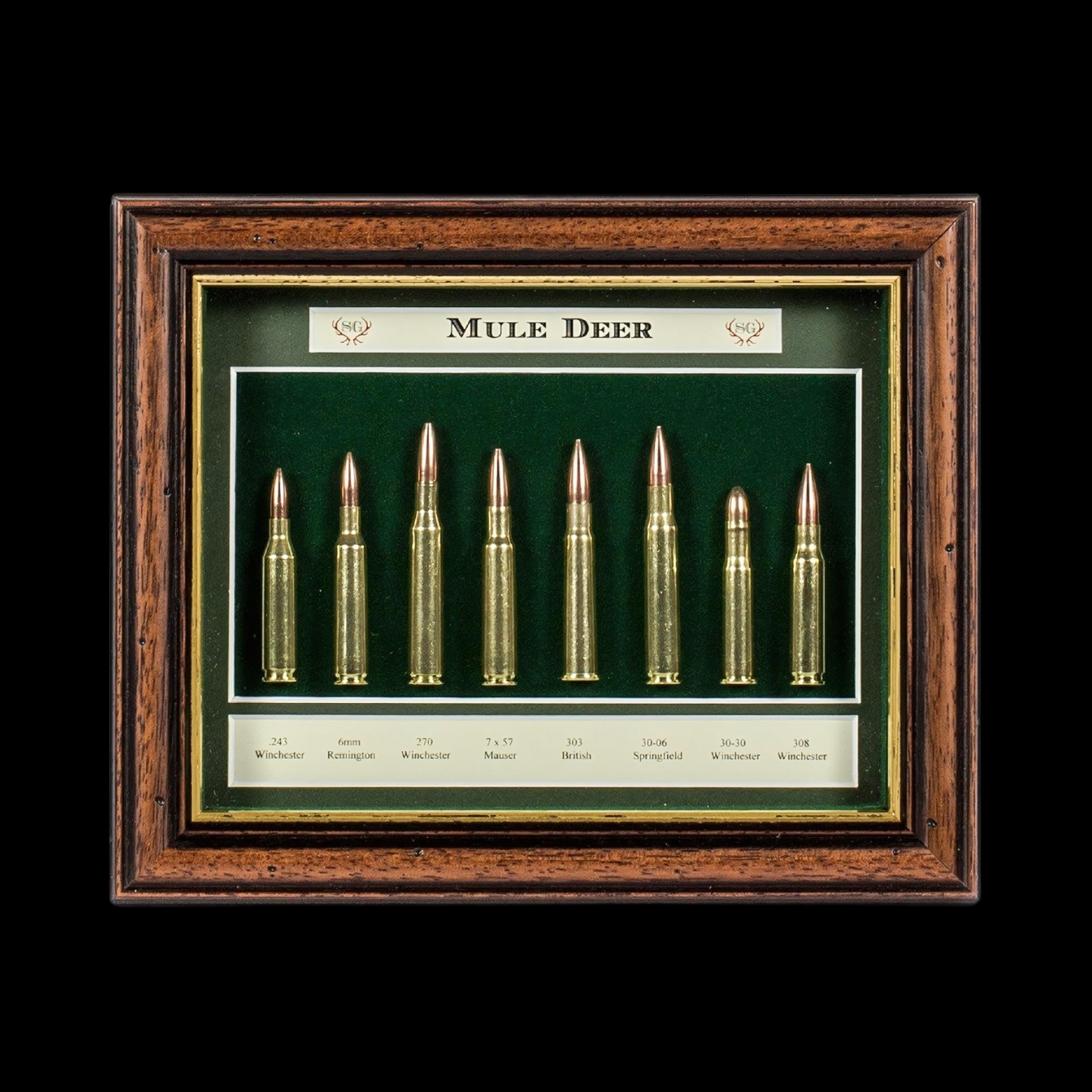 These beautiful Cartridge Boards feature a decorative wood and glass frame, green wool felt background, and clear descriptions. They can be displayed separately or combined to create an informative display of these iconic cartridges. Custom made by The Sporting Gentry, leader in Sporting design.