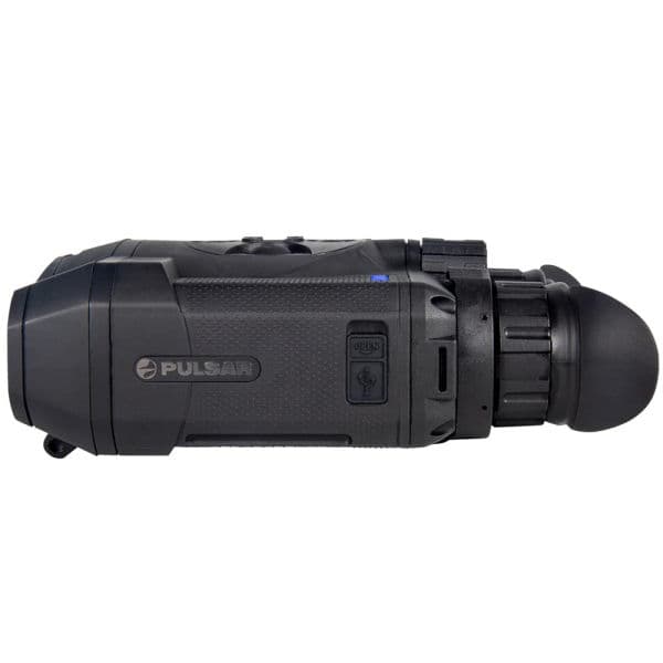The Trionyx T3 presents a technological innovation that combines focusable digital night vision and a fixed-focus thermal 384x288 sensor into one optical device. Either method can be used separately, or combine them into one image using any of the eight available color palettes. The thermal imaging has 2.5-10x magnification and the digital night vision has 3.5-14x, allowing users to combine the parts and create their desired view on the T3's high definition AMOLED 1280x720 display. The thermal detection range is 1,000 yards and the digital NV range is 450 yards. It has a built-in 850mm IR illuminator.