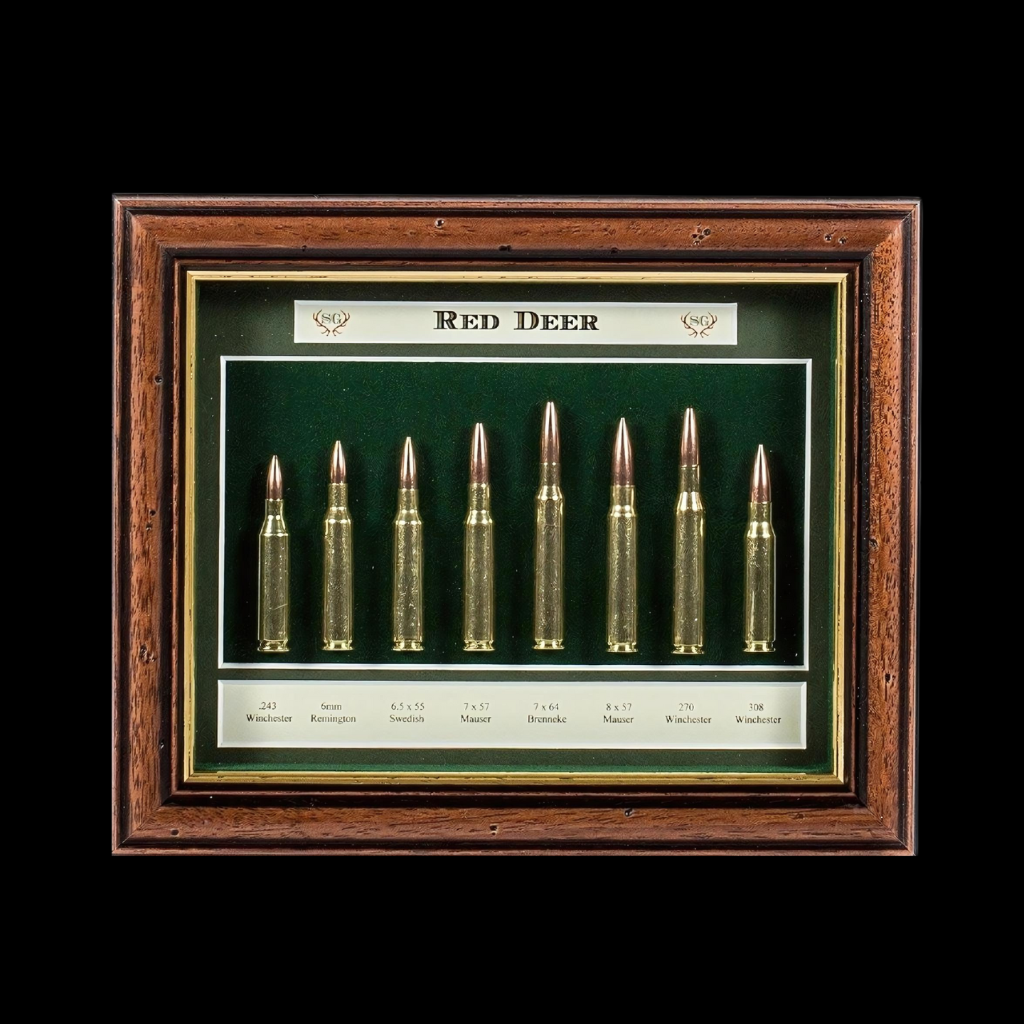 These beautiful Cartridge Boards feature a decorative wood and glass frame, green wool felt background, and clear descriptions. They can be displayed separately or combined to create an informative display of these iconic cartridges. Custom made by The Sporting Gentry, leader in Sporting design.