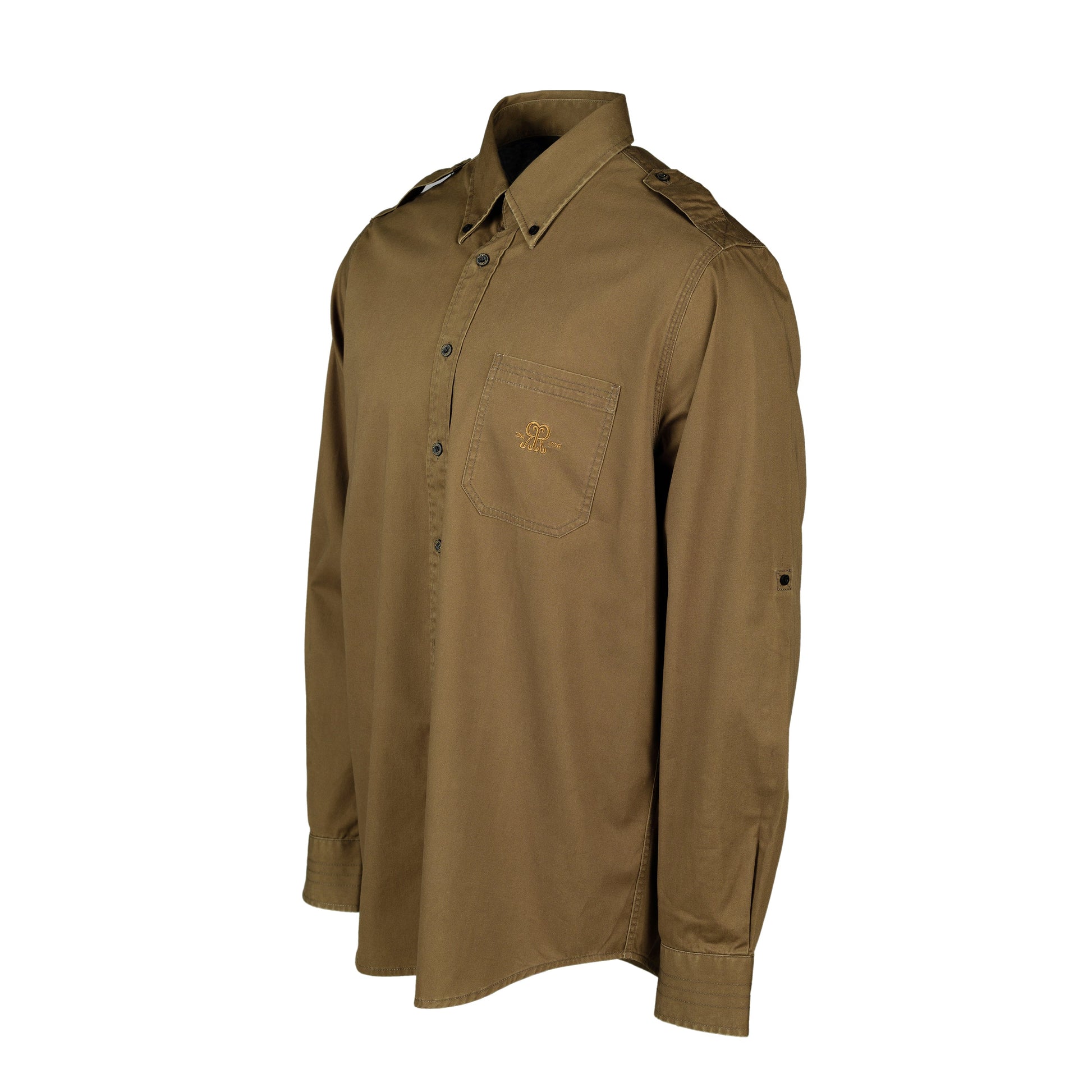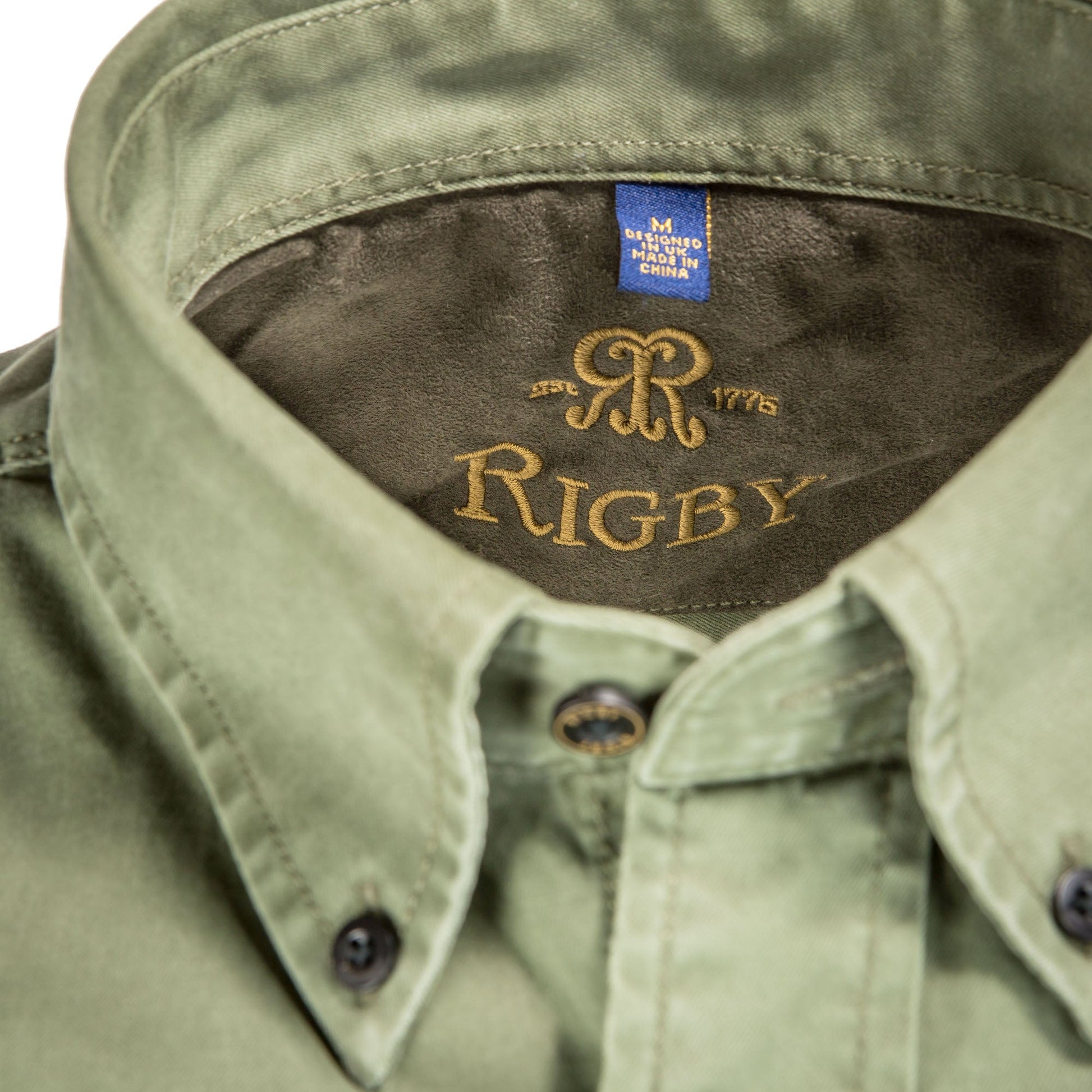 A go-anywhere, go-to hunting shirt that will serve you just as well on plains, mountains, or in forests. Woven in a uniquely adaptable dark olive coloring, the shirt features the Rigby ‘Double R’ logo embroidered on the button-free breast pocket.
