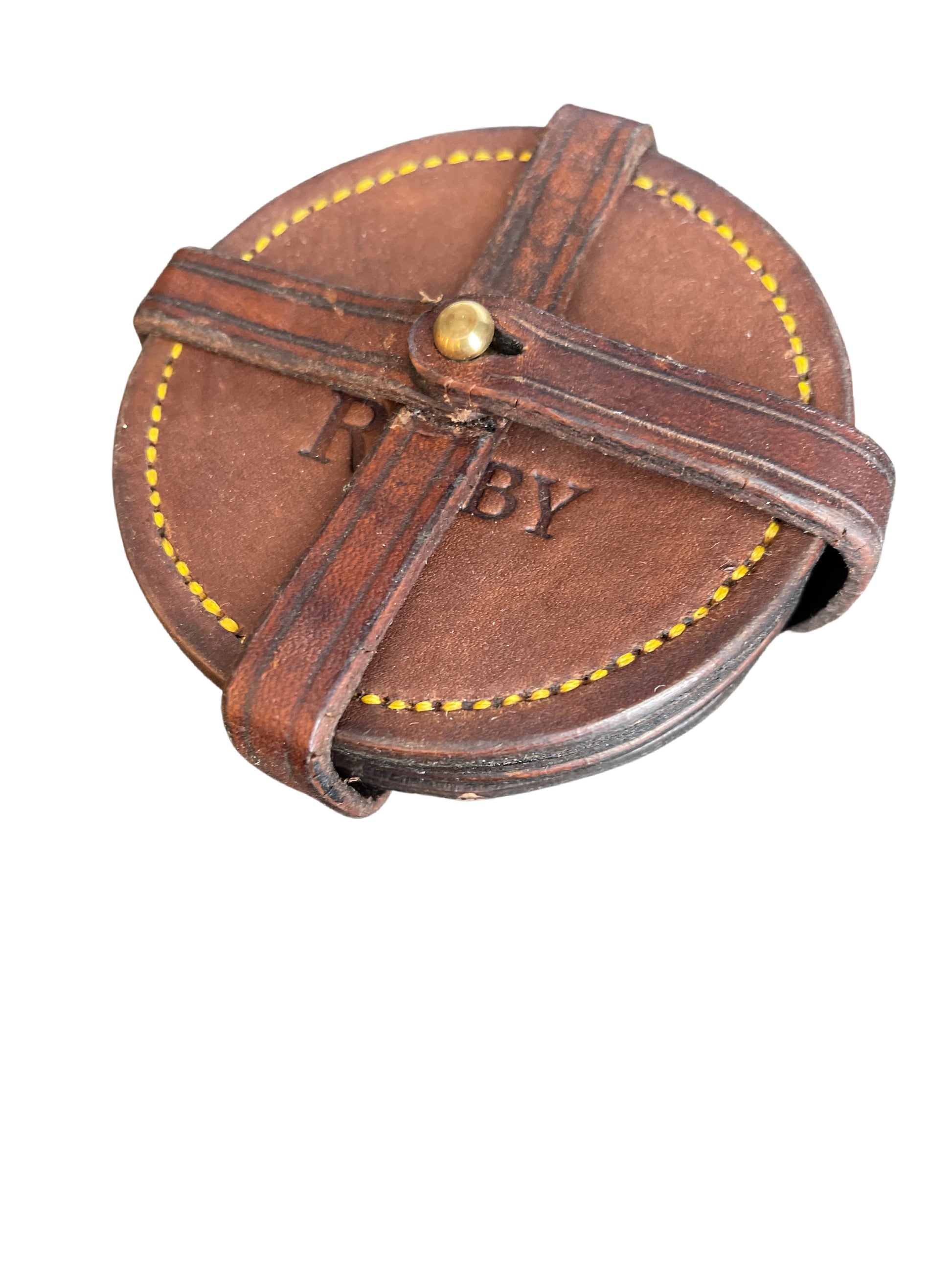 A Big Game fan can never have too many Rigby pieces. Add this set of six leather coasters embossed with Rigby ‘double R’ logo to the collection - comes with convenient leather and brass holding straps.