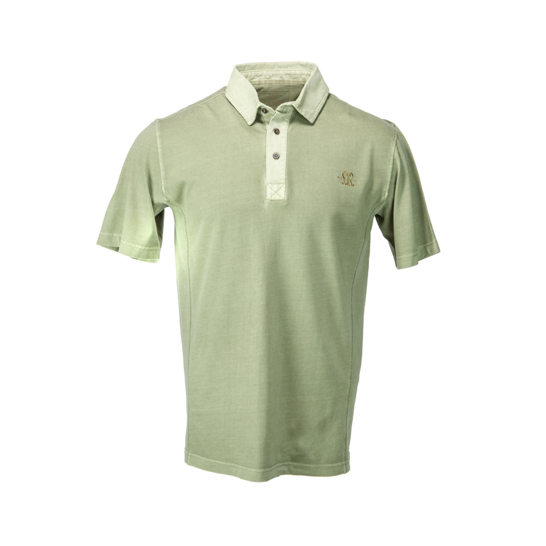 Durable cotton polo shirt embroidered with the Rigby ‘Double R’ logo in gold. Faded wash in beautiful Olive color, going casual doesn't mean dressing down with this handsome polo from Rigby. European sizing.