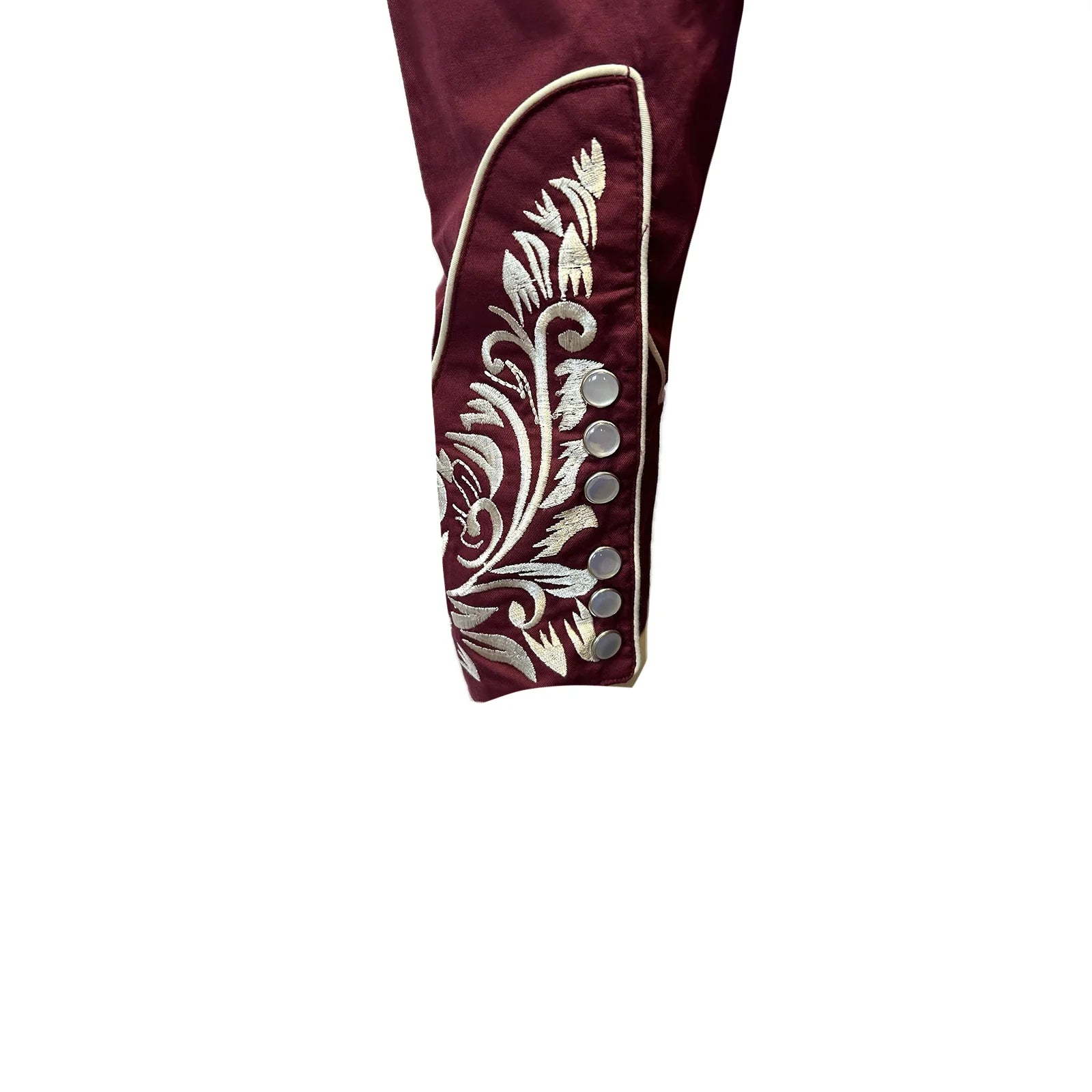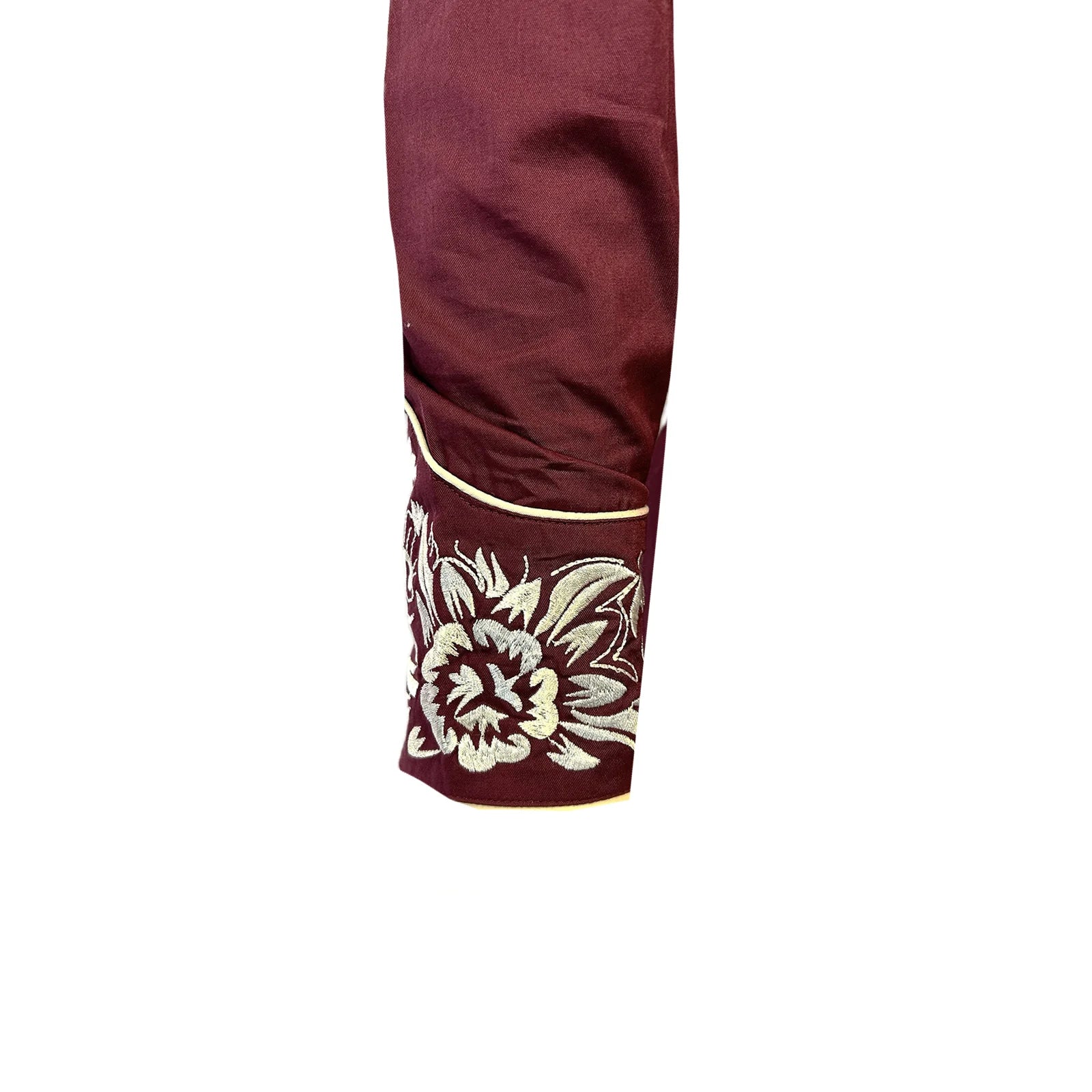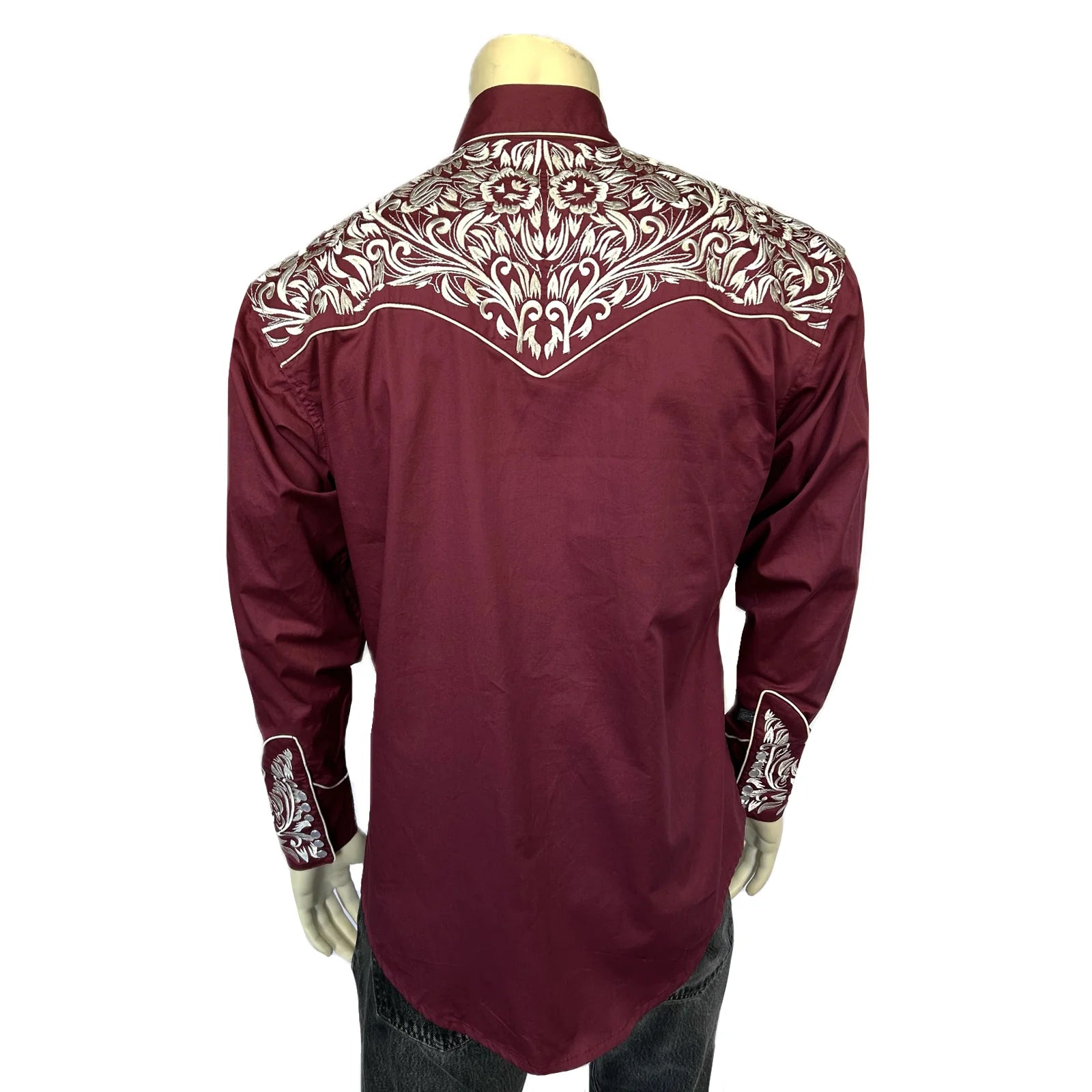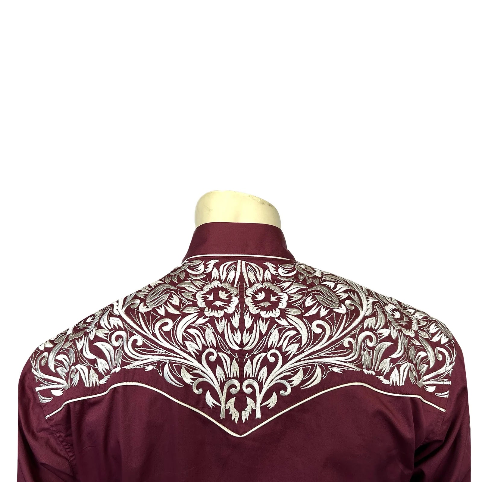 Men's Vintage Burgundy & Silver Tooling Embroidered Western Shirt