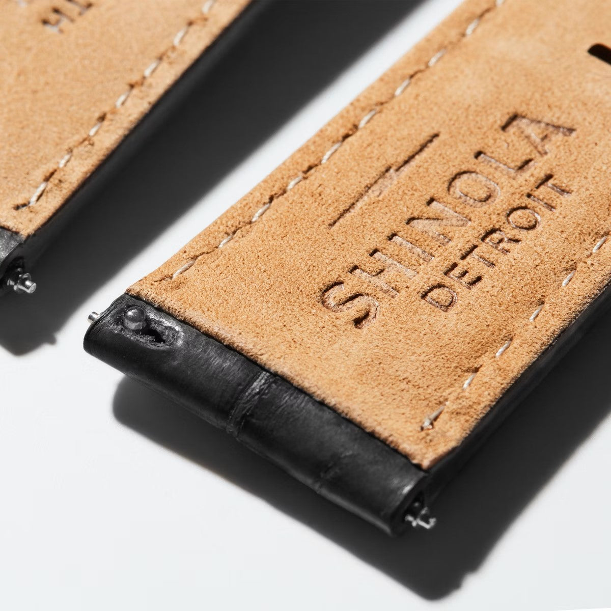 Genuine alligator watch straps are made from incredibly durable leather. Shinola alligator watch straps were designed with a style that thinks in decades, not seasons. With good leather care, Shinola alligator watch straps will remain attractive and usable for years.