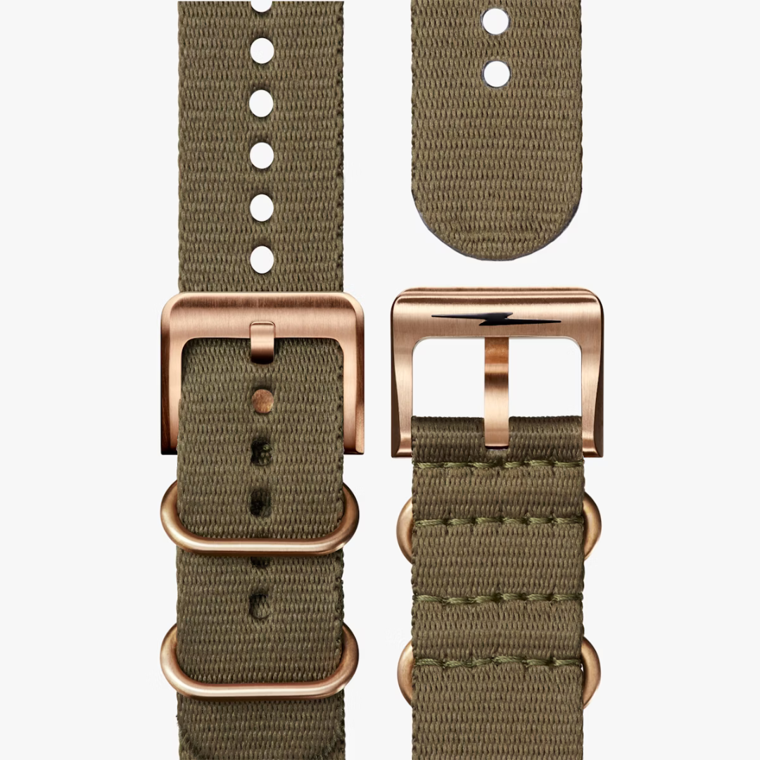 Strap Color Detail: Teak Leather w/ addition Khaki Nylon