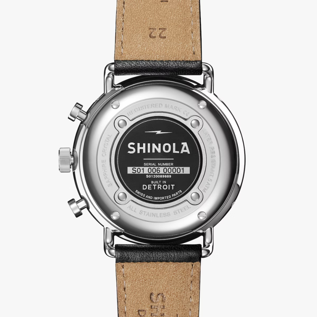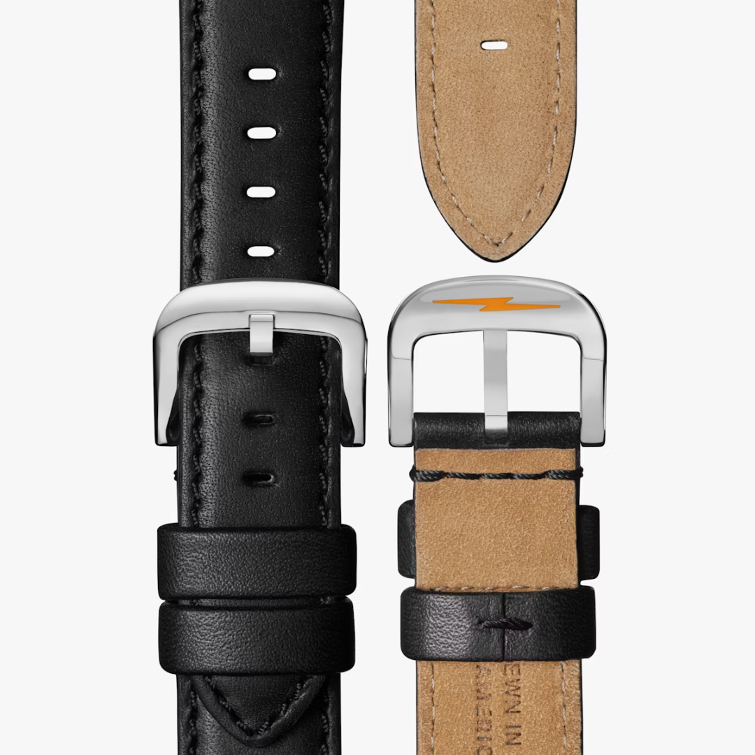 Shinola is breaking the mold when it comes to the traditional sports watch. The Canfield Sport is a timepiece where complexity takes center stage. Built using a top loaded case construction, the Canfield Sport features a fixed top ring with ceramic insert and an open dial punctuated with three sub dials, making this watch sporty and instinctively classic. The look is completed with a black leather strap. Every detail of the Canfield Sport makes it a refined and quintessential timepiece to add to your wardrobe.