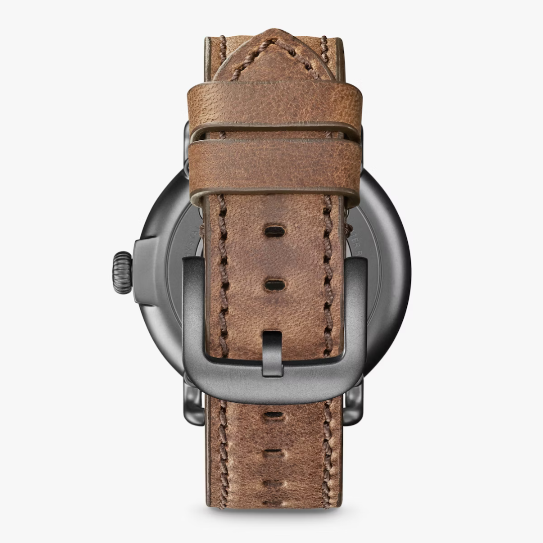 Perfect for any Michigander or frequent visitor of Lake Michigan’s shores, this Runwell has its own unique story to tell. With the sandblasted PVD gunmetal case and British tan leather strap, it’s an instant—and versatile—icon.