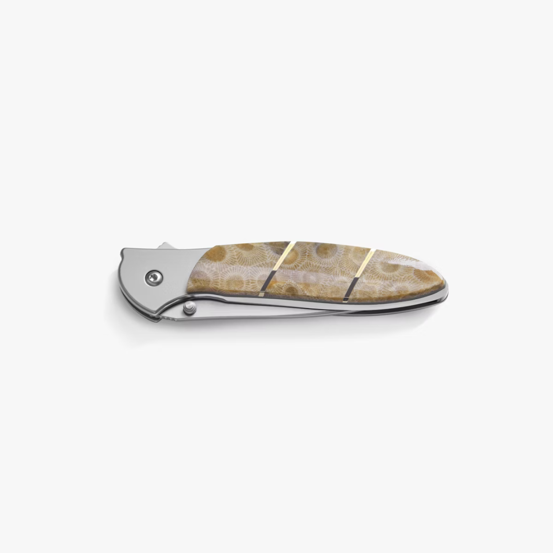 Made in the U.S.A., it has a 3-inch frame lock blade. The handle is crafted from stainless steel with a bead-blasted finish and Petsokey Stone inlay. And because the pattern of every Petoskey Stone is unique, each Kershaw Leek Petsokey Knife is completely one-of-a-kind.