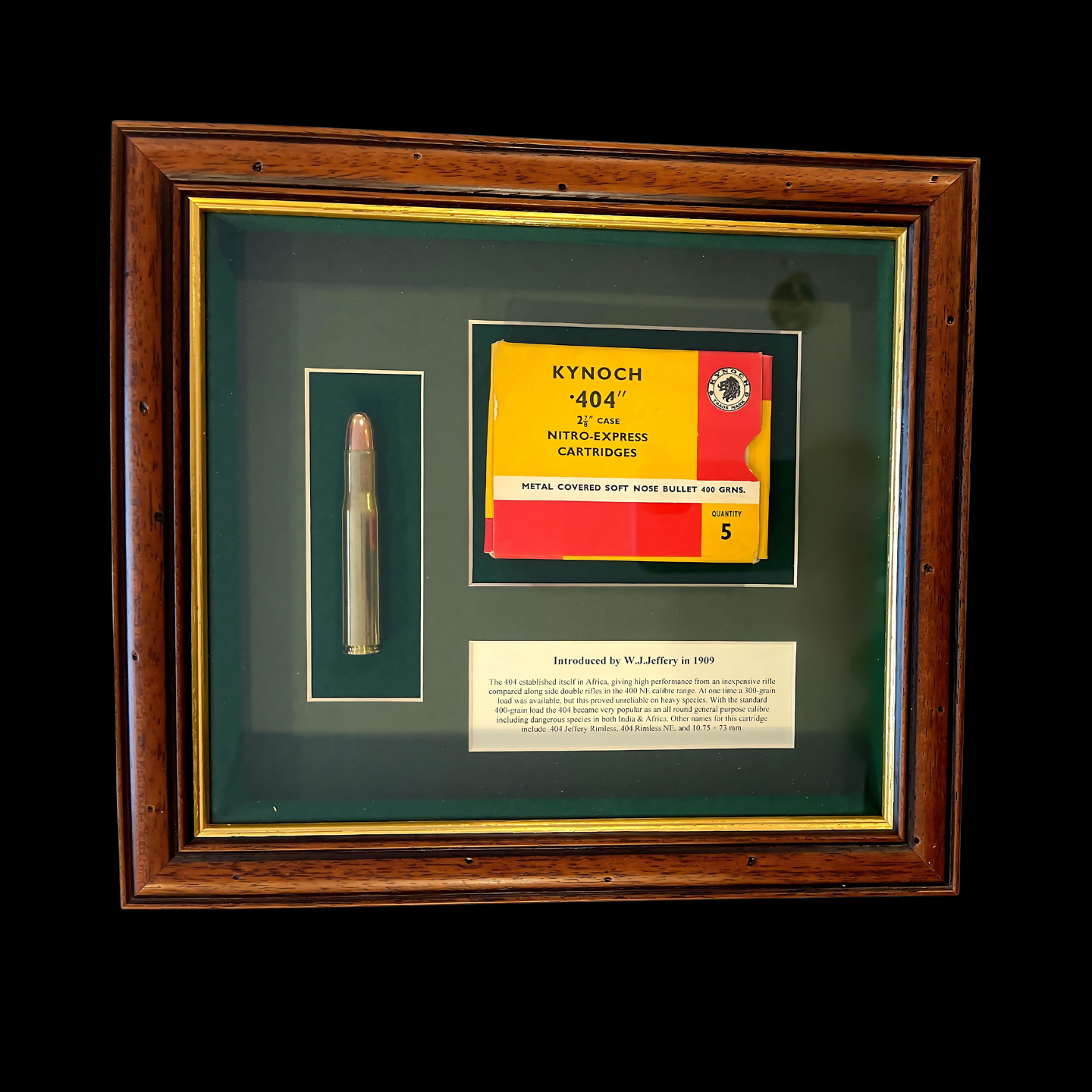 These beautiful Cartridge Boards feature a decorative wood and glass frame, green wool felt background, and clear descriptions. They can be displayed separately or combined to create an informative display of these iconic cartridges. Custom made by The Sporting Gentry, leader in Sporting design.